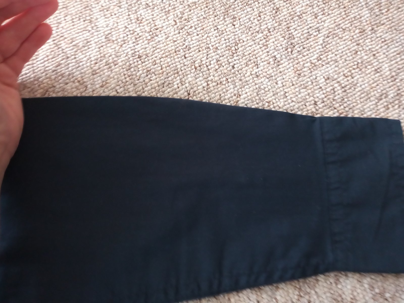 Málo nosená, bez poškodení. Veľmi príjemný ľahký mäkký materiál. Strih slim fit. Rozmery na foto. Farba veľmi tmavomodrá až čierna (reálna farba ako na poslednej foto).
