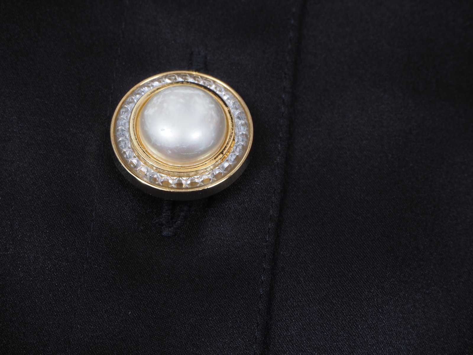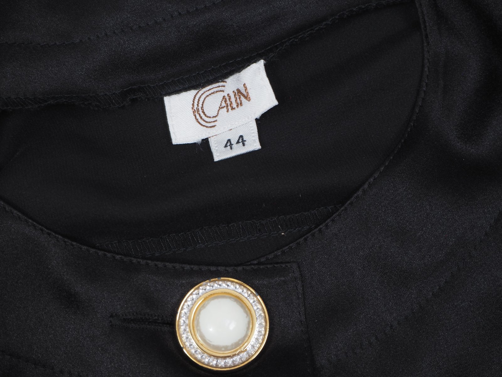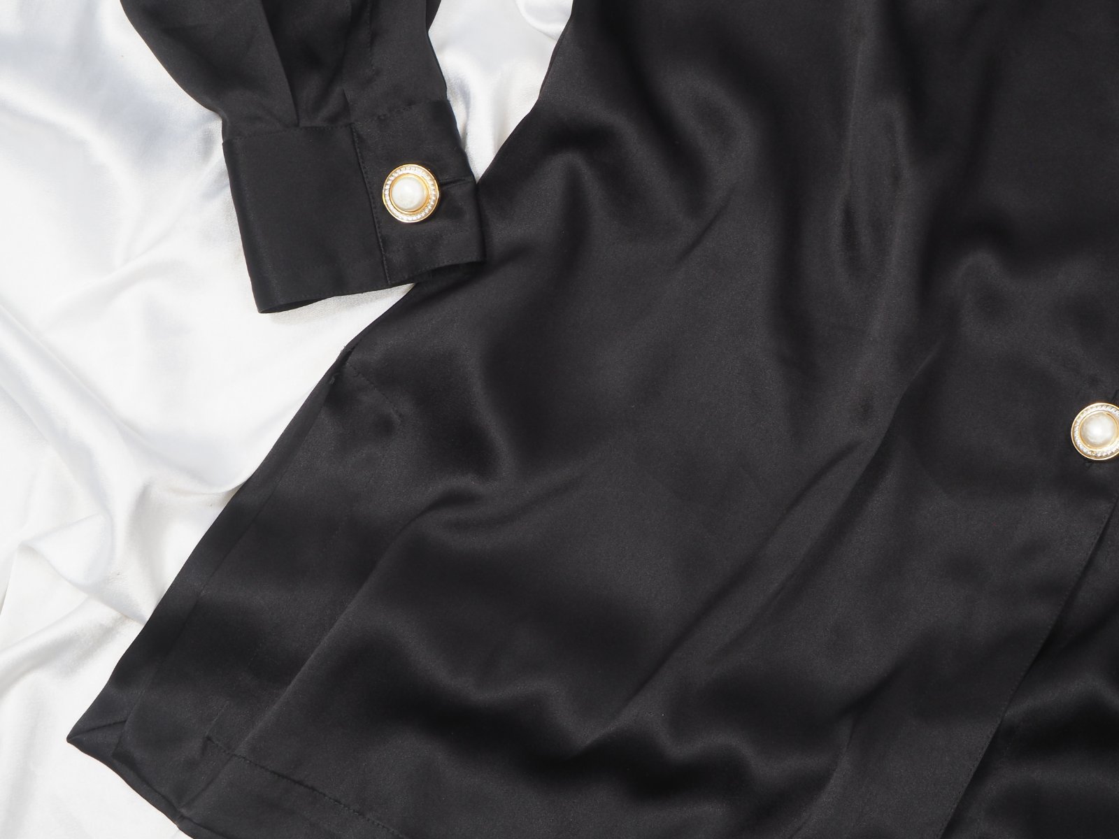 Kvalitná čierna saténová blúzka, zapínanie na ozdobné gombíky, vintage štýl s vypchávkami na ramenách, super stav.