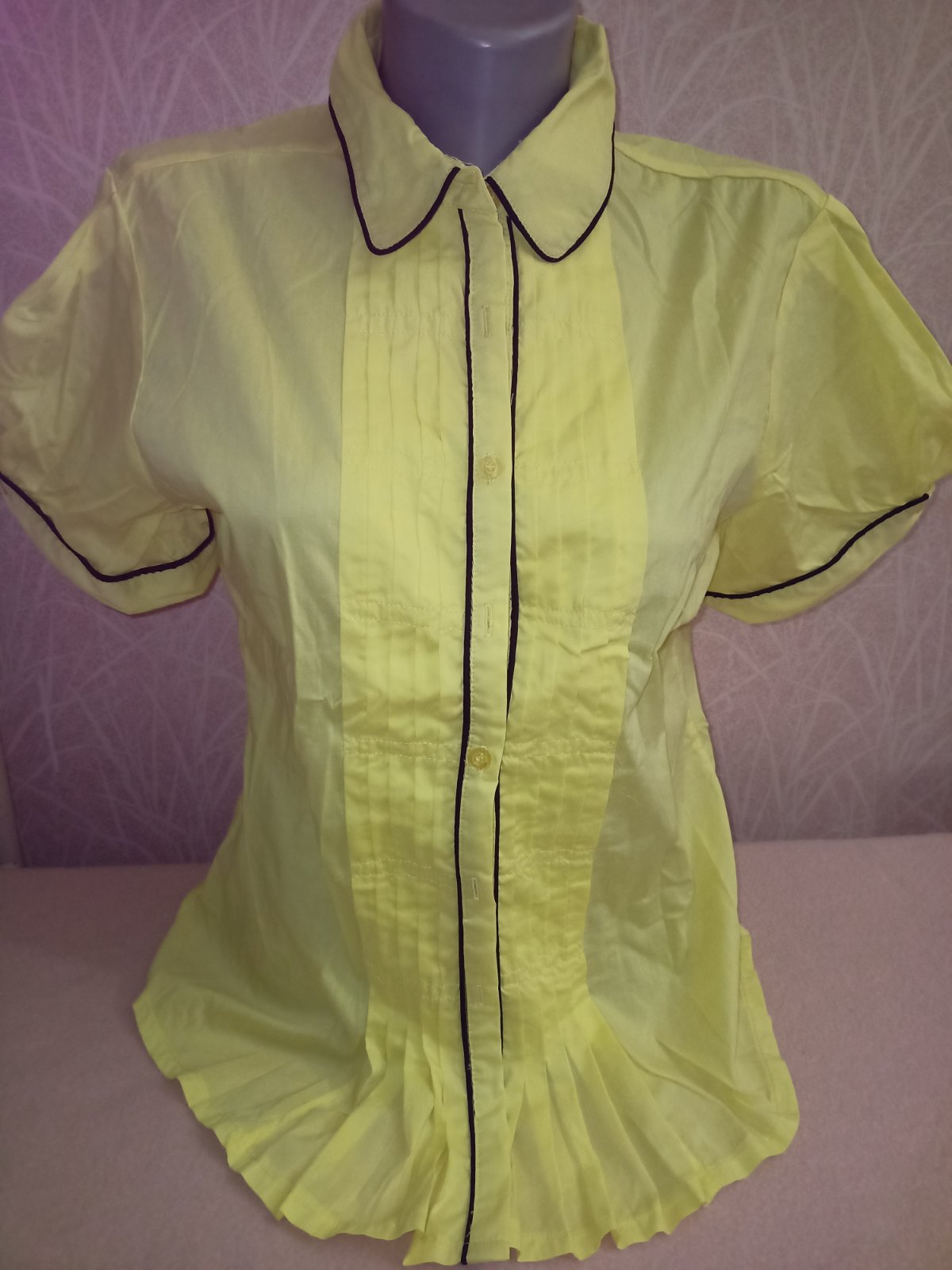 Elegantná blúzka s nazberkanými rukávmi. Veľkosť neudaná, tipujem na M (40/42)