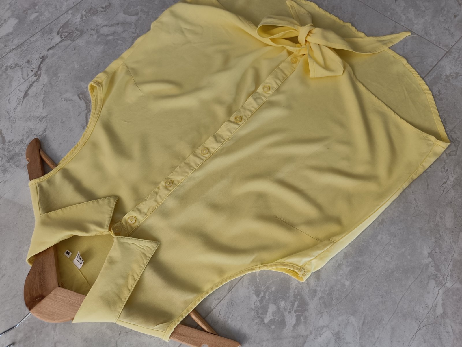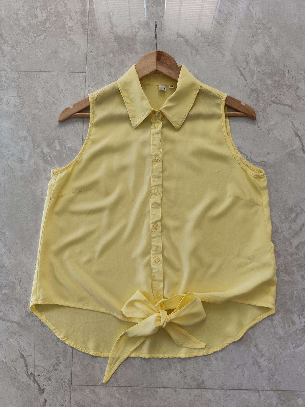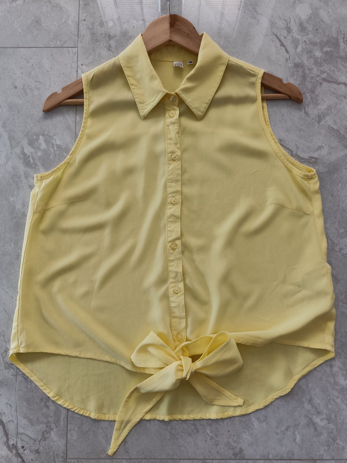 Ľahká letná pastelovo-žltá blúzka so zaväzovaním na páse zn. Rainbow. Kupovaná v Bonprix.