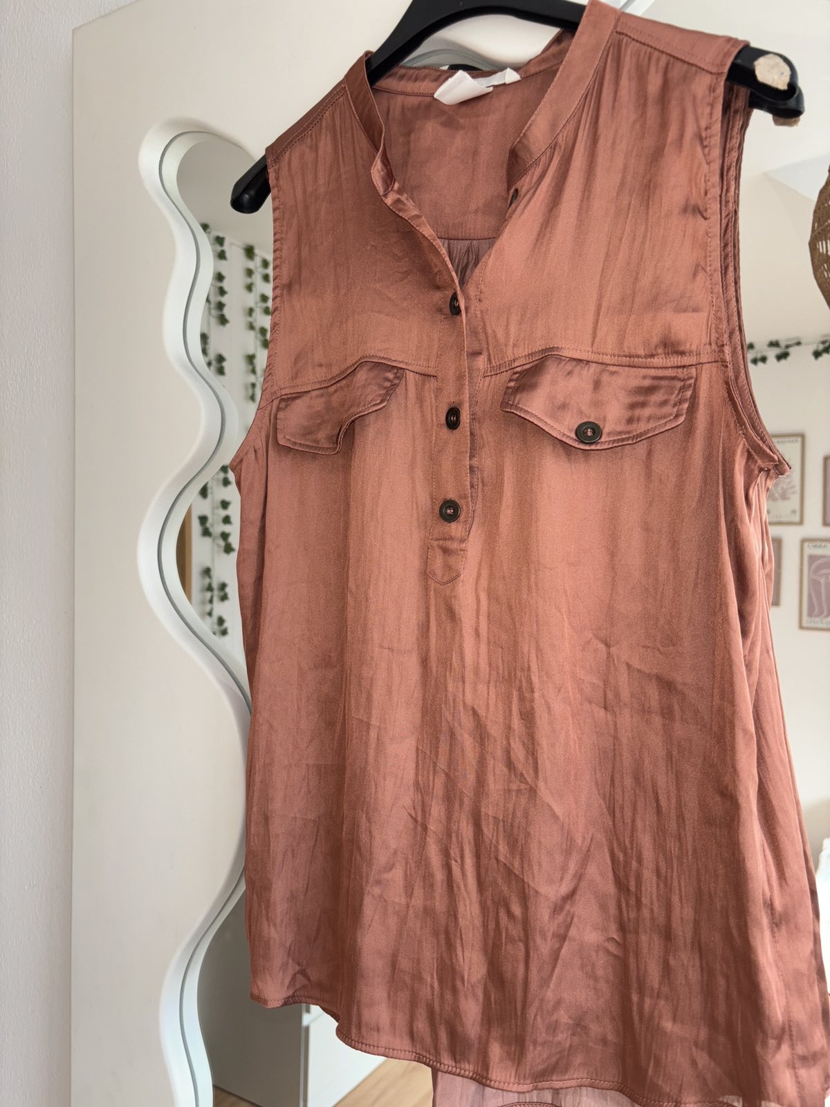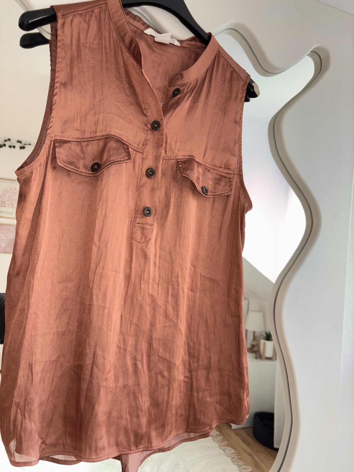 Výborný stav, hnedý, veľkosť 36, aj na 38,šírka pod pazuchami 50 cm, dĺžka 65 cm