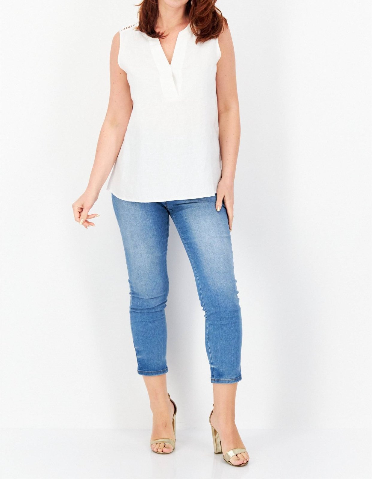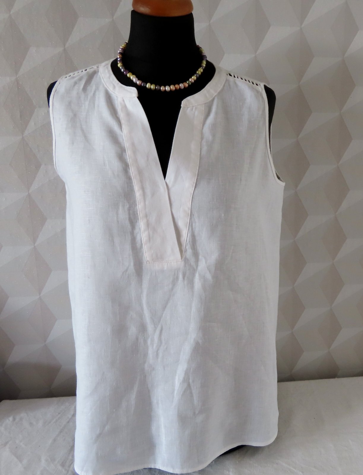 Biela ľanová blúzka bez rukávov, Gerry Weber, veľ.L, rozmery: dĺžka 64cm, pod pazuchami 2x50cm.