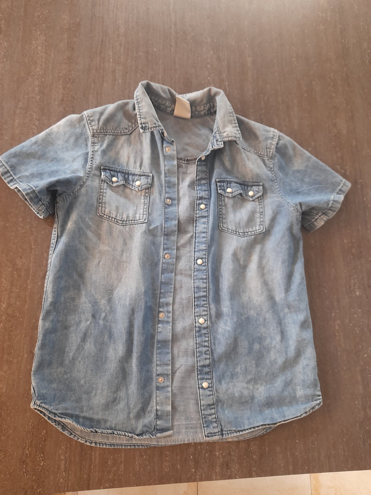 Košeľa bledej modrej farby s vačkami v super stave.