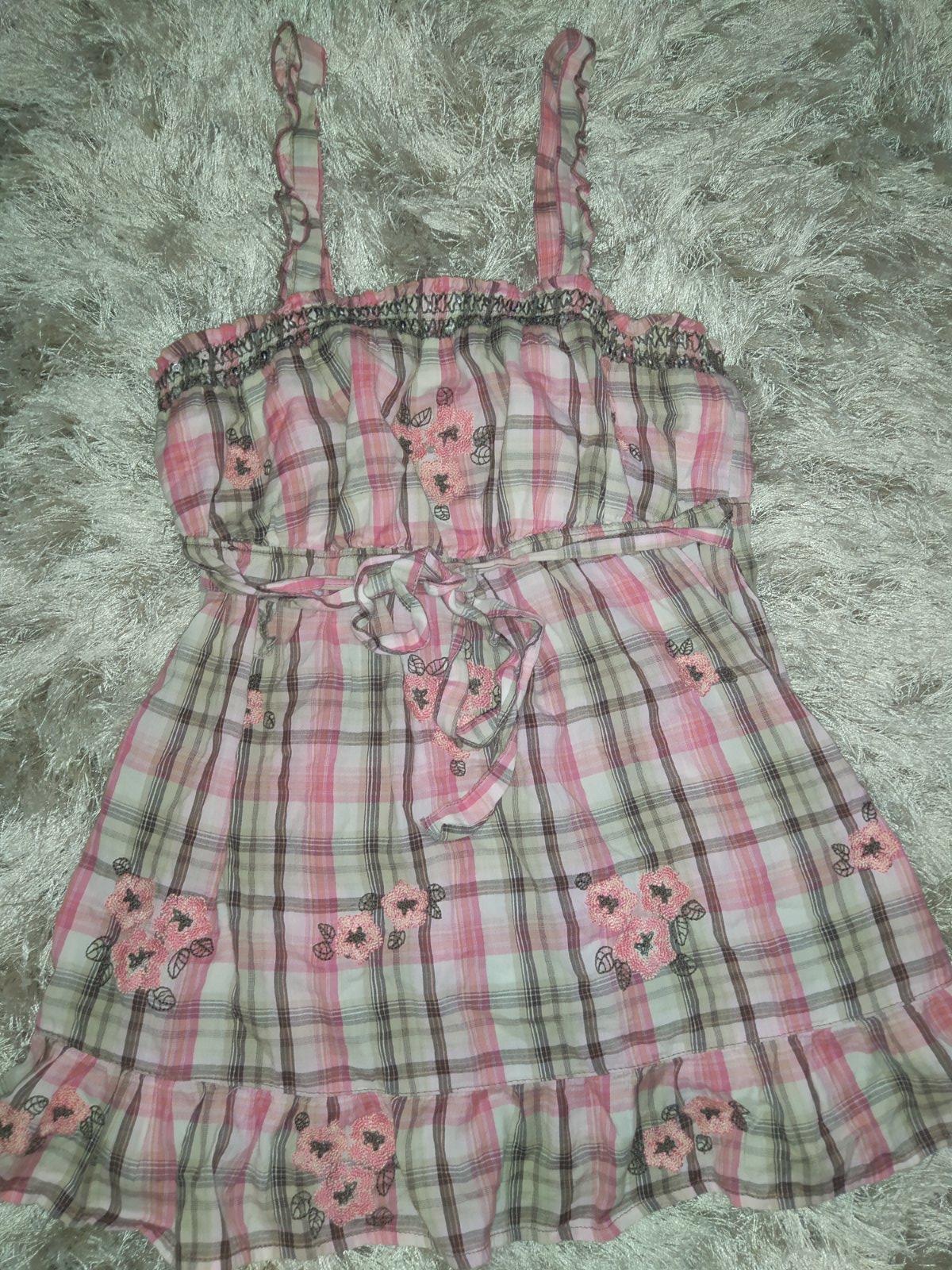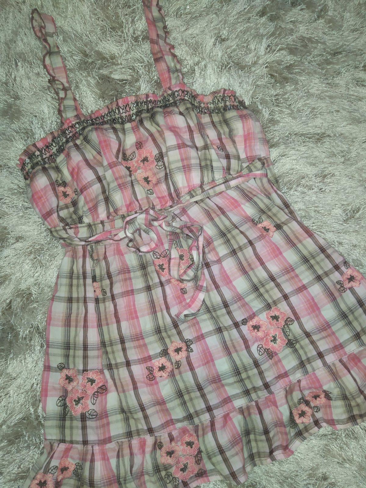 Ponúkam asi 2 krát oblečenú blúzku 158/164. Super stav. Dĺžka od ramena pri krku cca 53cm, predný diel predĺžený o cca 8cm, šírka pod pazuchami cca 40cmx2.