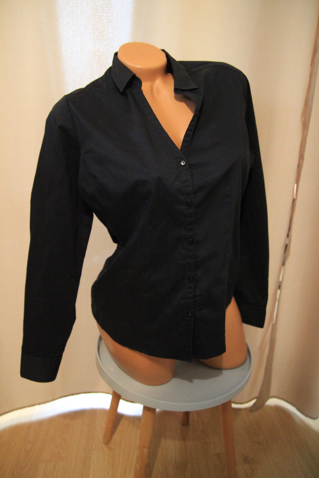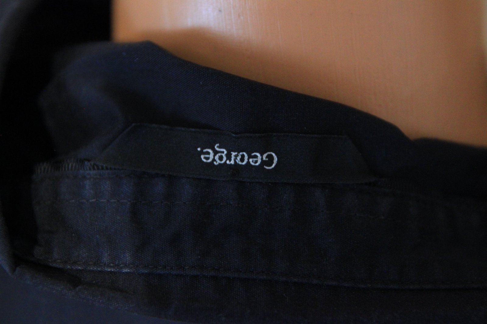 Čierna nosená košeľa značky George, veľkosť L. Na spodku rozpáraná, tak isto aj šev na rukáve je oslabený.