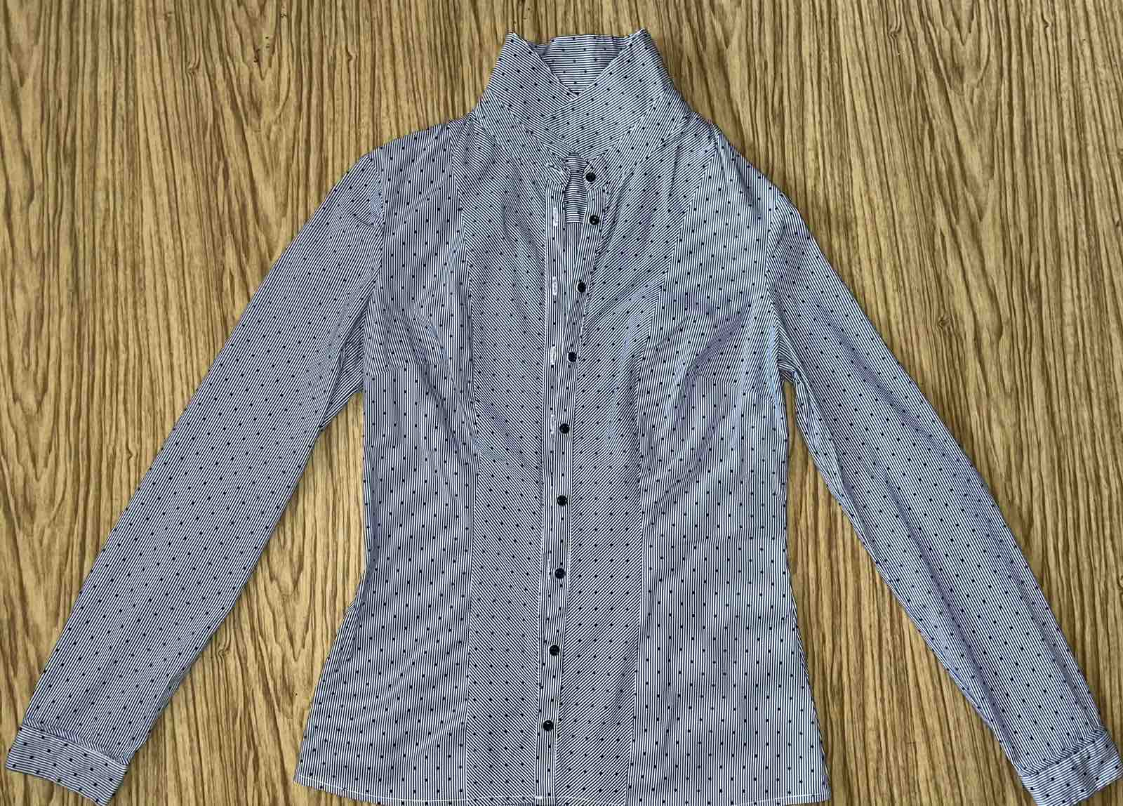 Dobrý nosený stav. Pekný zúžený strih. Mierne elastická. Vyblednutá farba. Šp paz 45, pás 37. Dĺžka PD 60, rukáv od krku 11,5+64