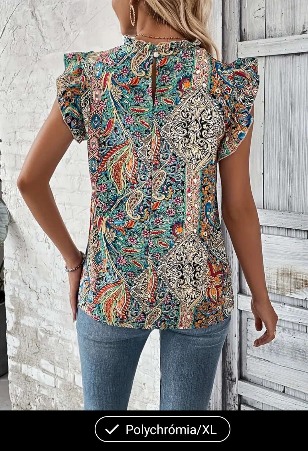 Veľmi pekná tunika, látka asi šifón, na príležitostné oblečenie, vhodné obliecť čierne tielko pod tuniku. Ukáže pekne k nohaviciam aj sukni. Vpredu je prestrihnutá - š. pod rukávom: 55cm x 2, v mi...