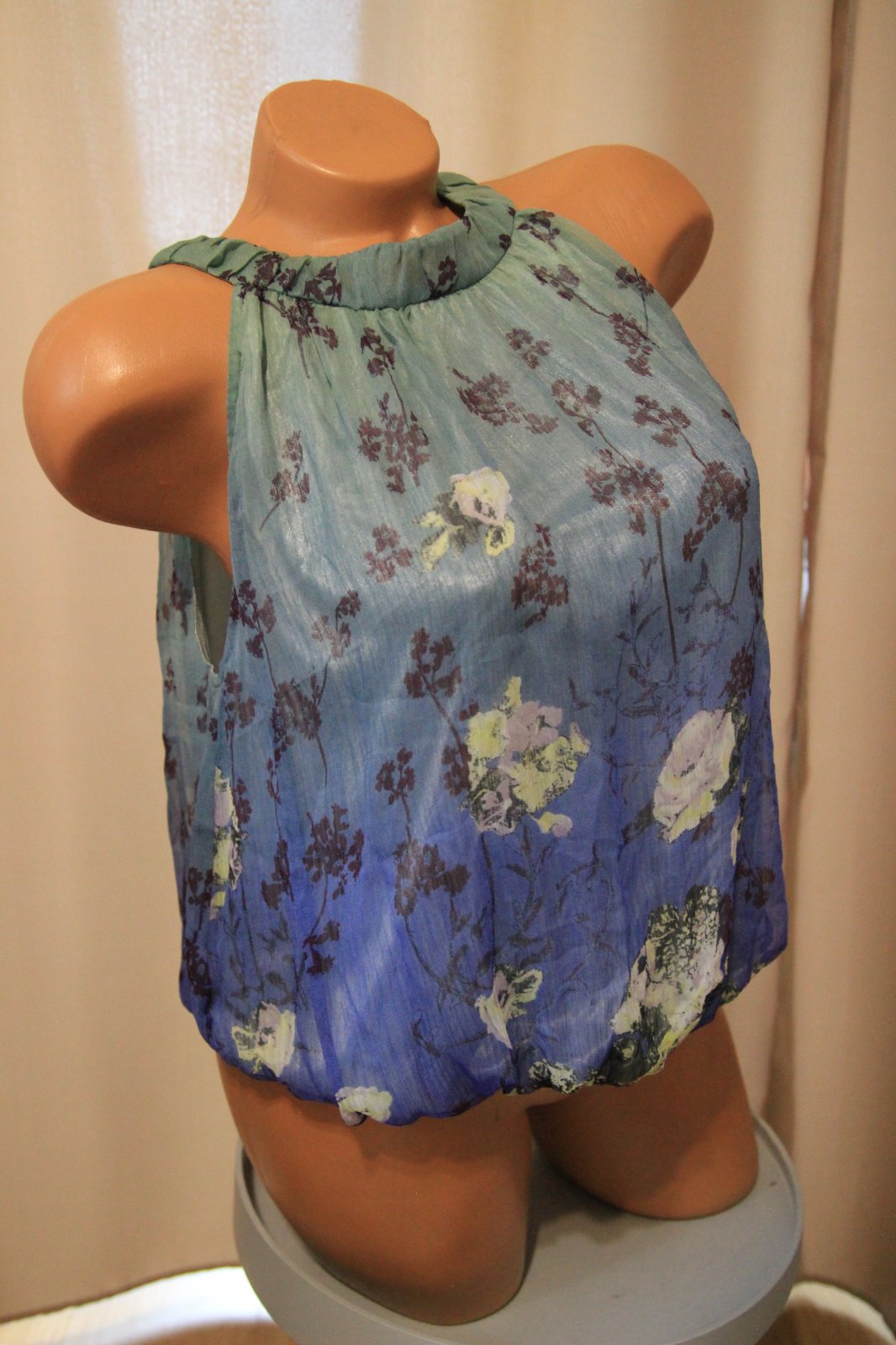 Modrý kvetinový top značky Debbie Shuchat, veľkosť L. Top stav.