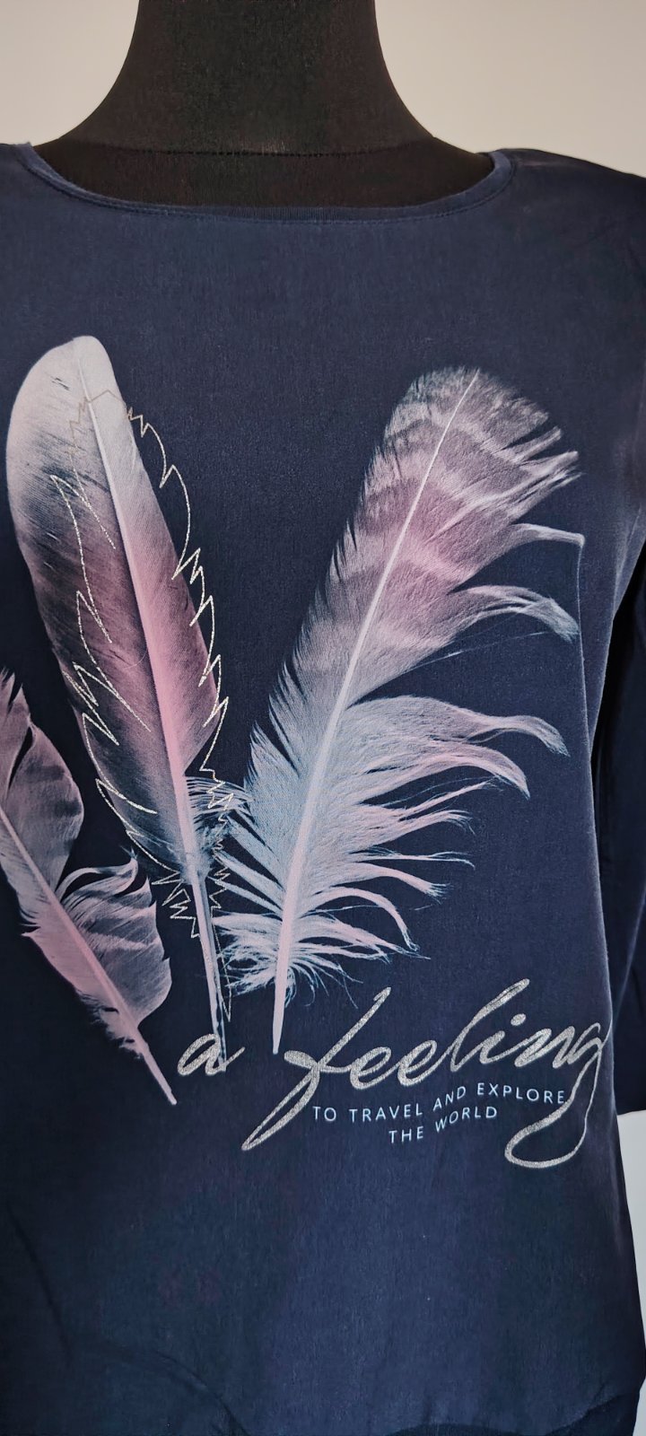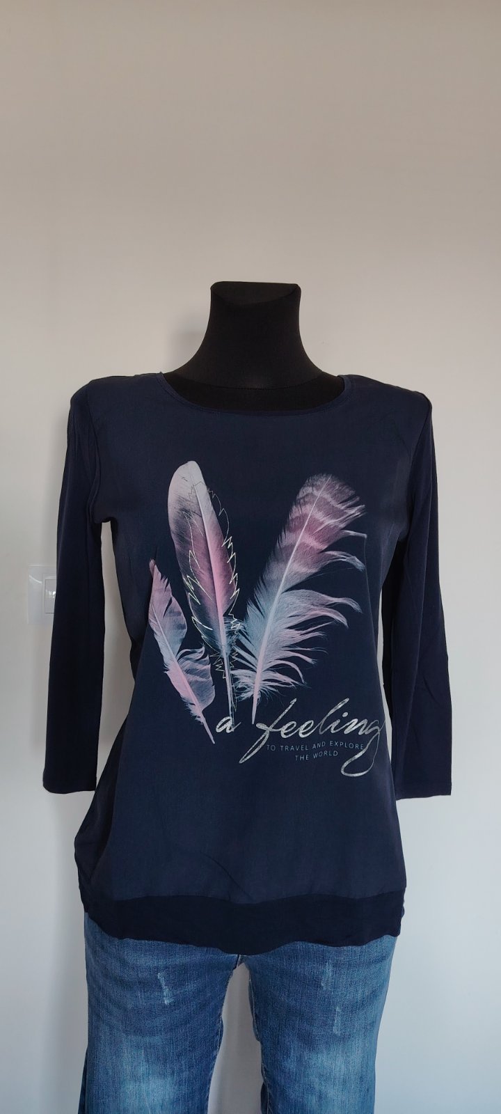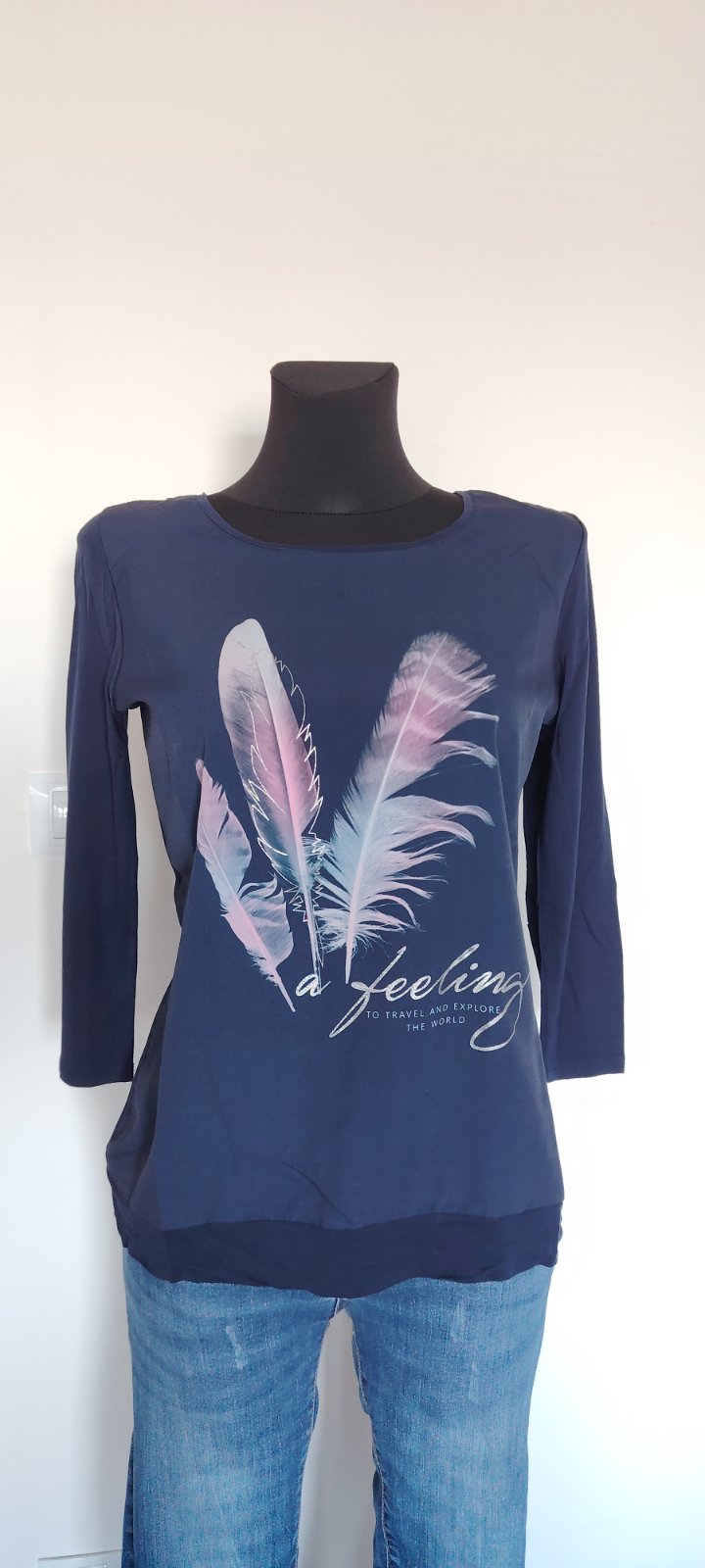 Pekná nosena bluzka. Je elastická, sedi na M/L. Predĺžený strih,vhodné aj pre vysokú postavu.