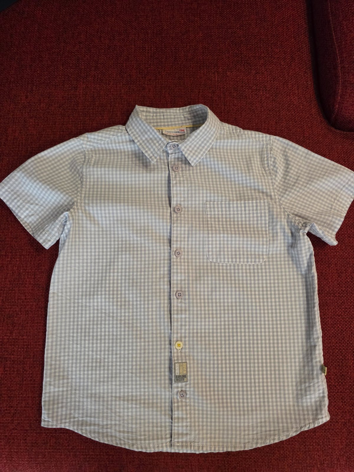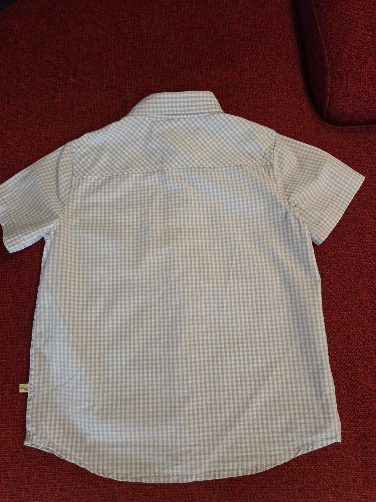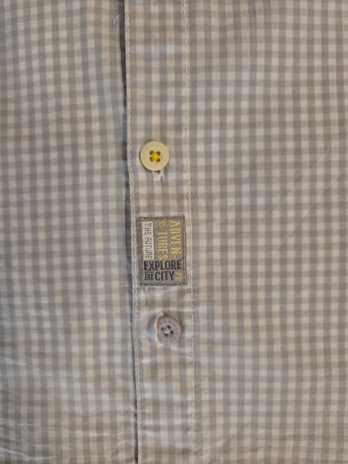 Kockovaná košela v bielo šedej farbe. S vreckom vpredu.