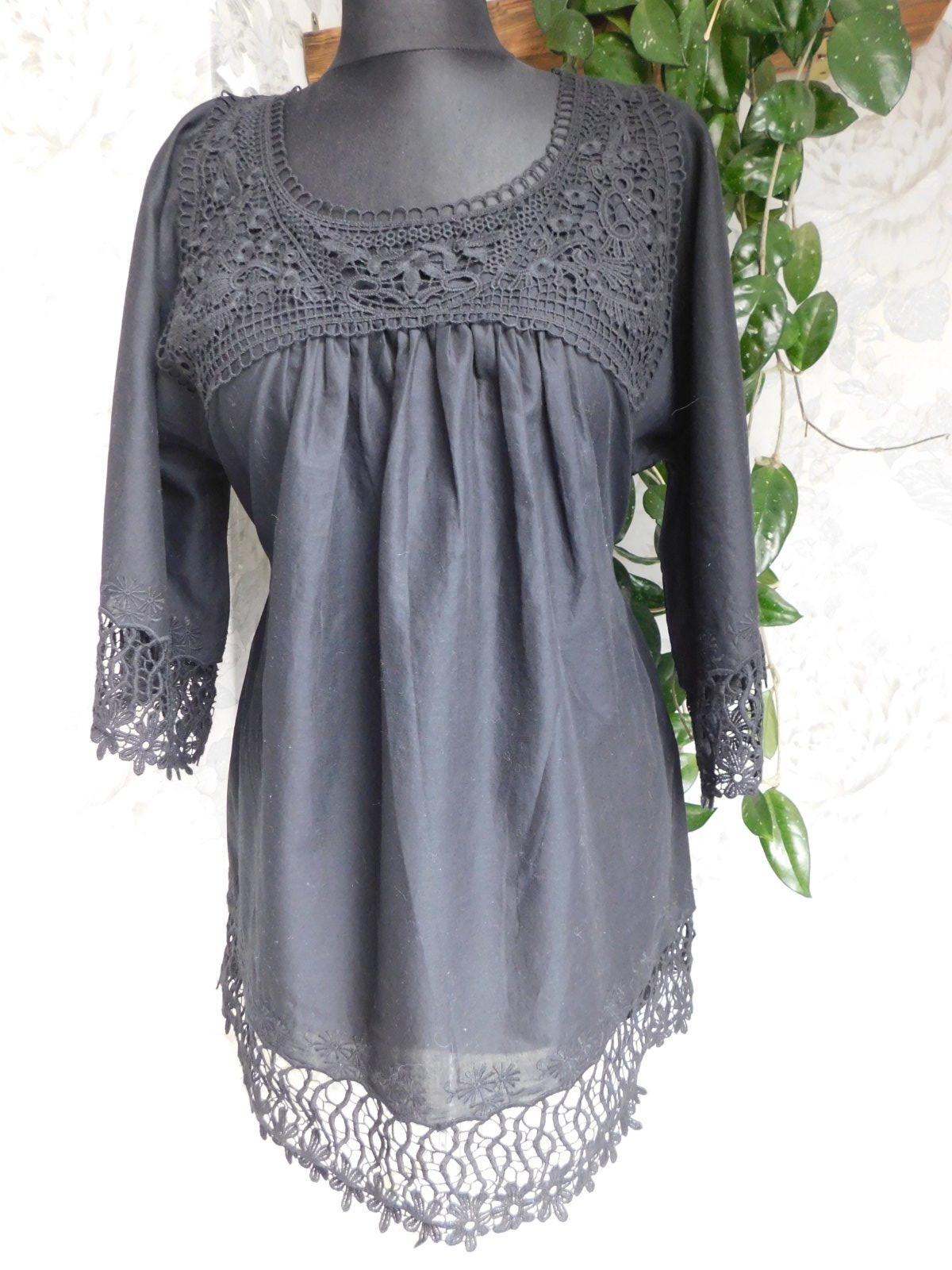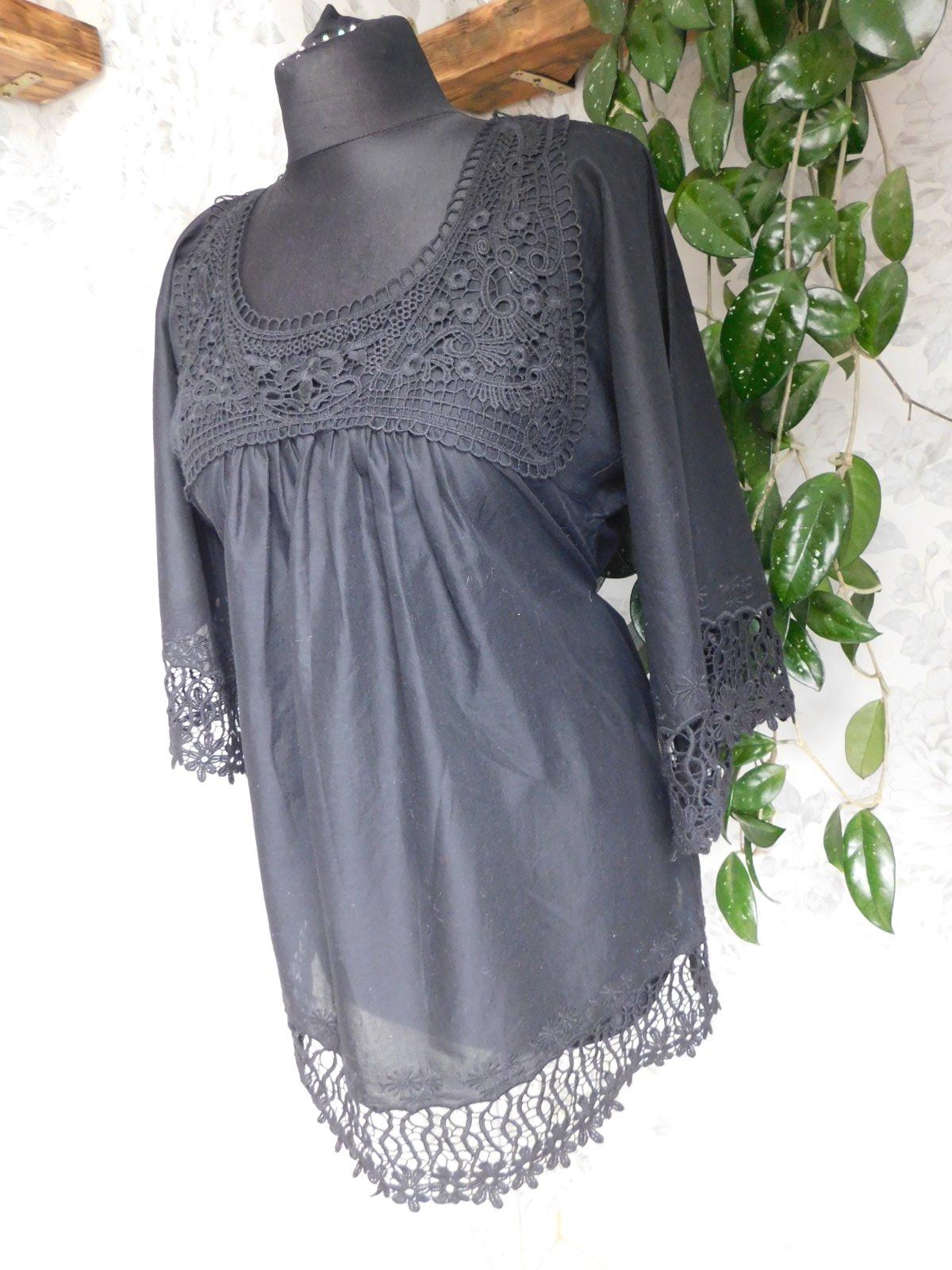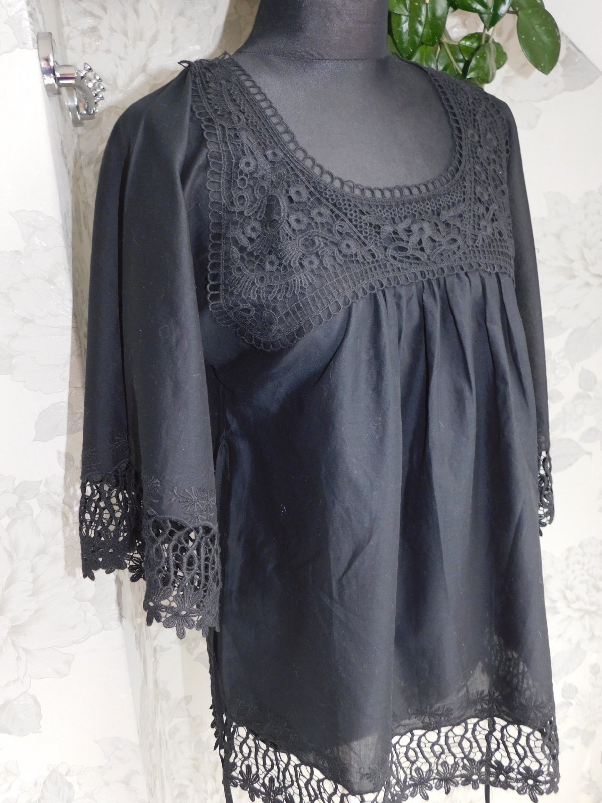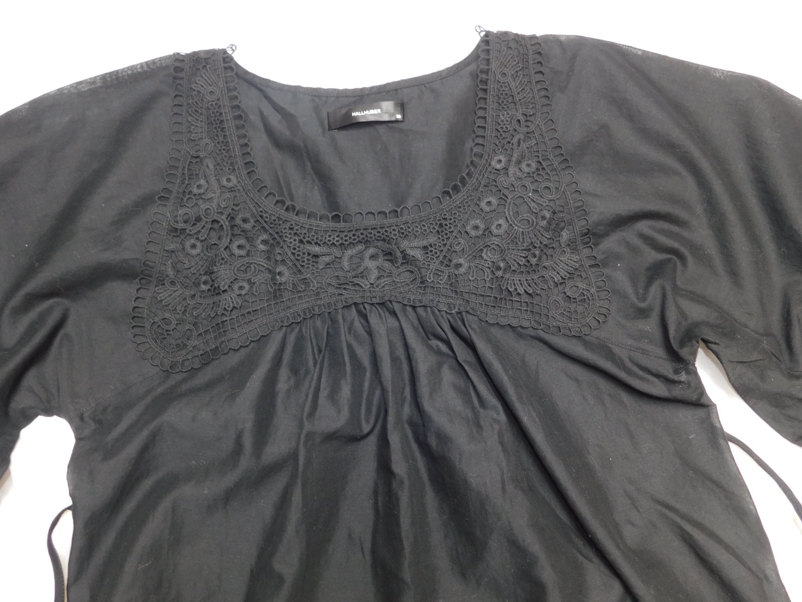 HALLHUBER Kvalitna lahučka bluzka čiernej farby,lemovana hačkovanou čipkou.100%cotton.ako nova,len bez visačky. se37
