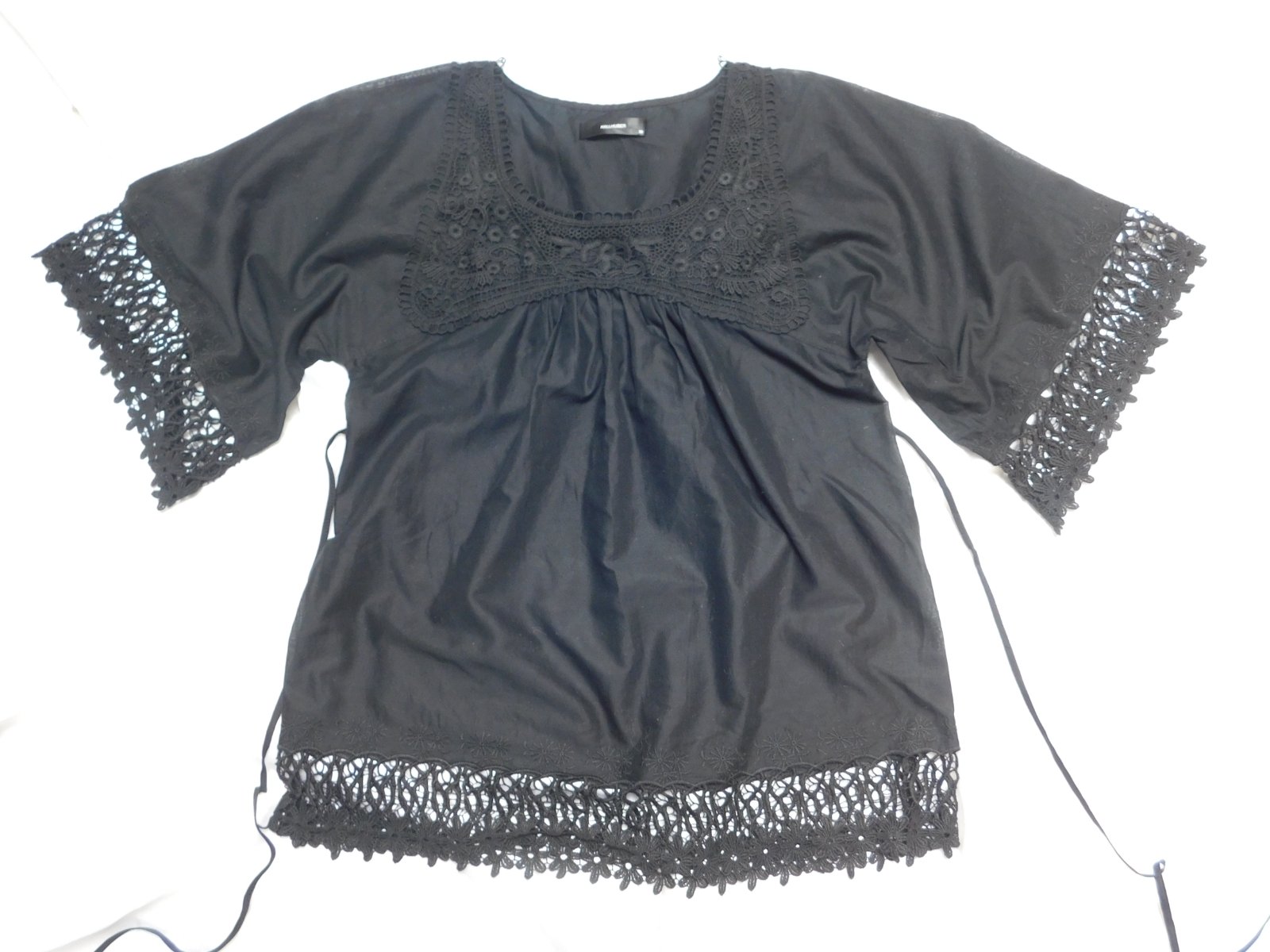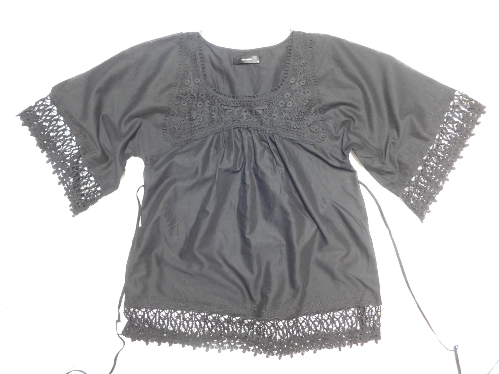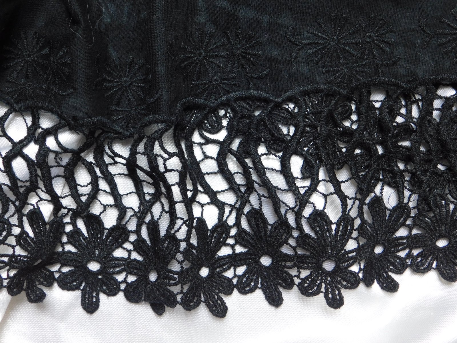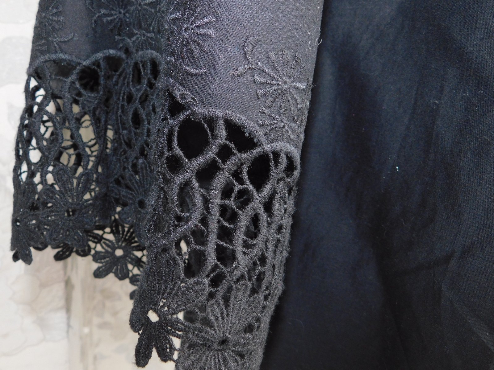 HALLHUBER Kvalitna lahučka bluzka čiernej farby,lemovana hačkovanou čipkou.100%cotton.ako nova,len bez visačky. se37