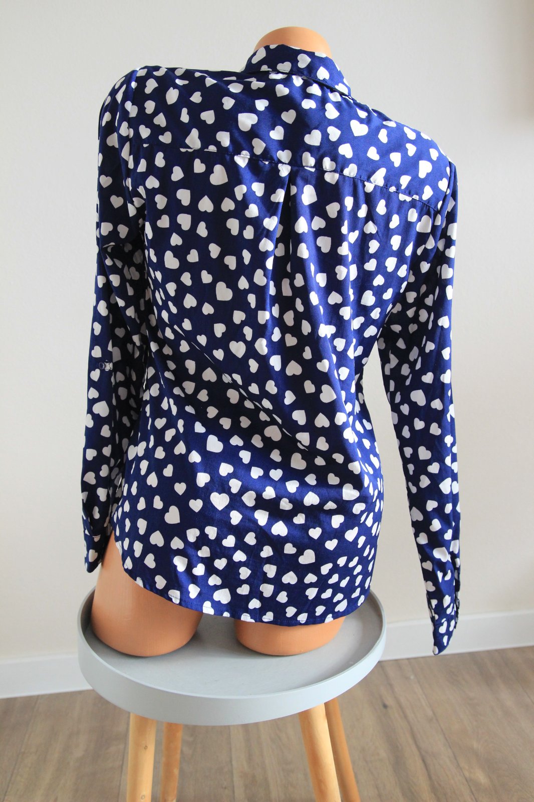 Modro biela blúzka so srdiečkami, veľkosť L/XL, top stav.