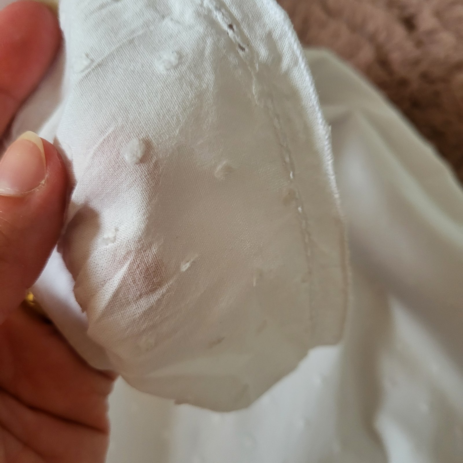 Pri nosených veciach môžu byť známky nosenia ako sú nedopraté fliačiky, jemné žmolky a pod. Niektoré veci si nevšimnem, tiež som len človek, fotím aj v noci pri umelom osvetlení, môže sa stať že niečo prehliadnem, v takom prípade má prosím, kontaktujte. No zároveň apelujem na kupujúcich, že ide o veci NOSENÉ, je teda zrejme, že môžu mať bežné známky nosenia. Čomu zodpovedá aj cena. Ak chcete veci nove a bezchybne, choďte si nakúpiť veci do obchodu za plnú cenu a nie v bazariku za par drobných. Veci periem na 30°C, niekedy na oblečení môžu zostať nie celkom dopraté fliačiky - tiene, ak sa fliačik nájde, treba len dôkladnejšie oprať.