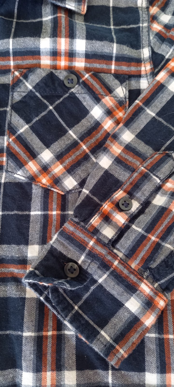 Veľmi pekná, frajerská košeľa. Zn. LINDEX, veľkosť 116. Stav je super až na malé škvrnky na bielej časti rukávov /viď. foto/. Malo by ísť vyprať, neskúšala som špeciálne. Pri bežnom nosení nie sú v...