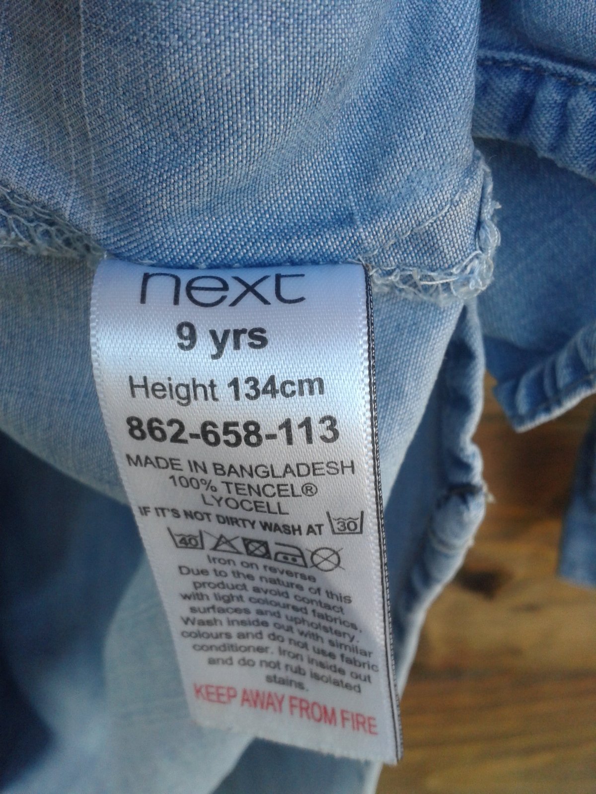 Dlhá rifľová košeľa/šaty zn.Next, veľ.140(9r)..rukávy s možným nastavením 3/4 dlžky..príjemný materiál..super stav