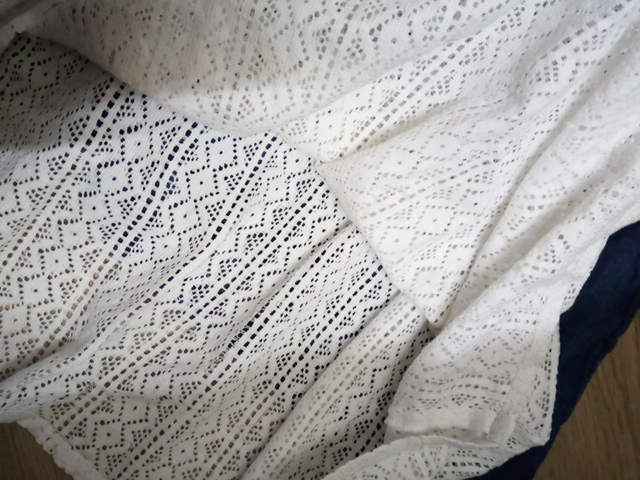 Taká pevná hrubá krajka akoby, blúzka je veľmi príjemná mäkká ohybná bavlna, není to hrubé kľudne prehodiť aj na top také voľnejšie tak som to nosila 🥰
