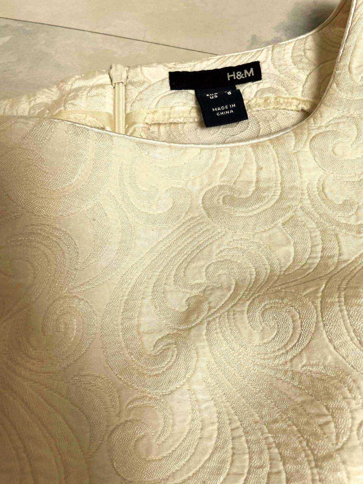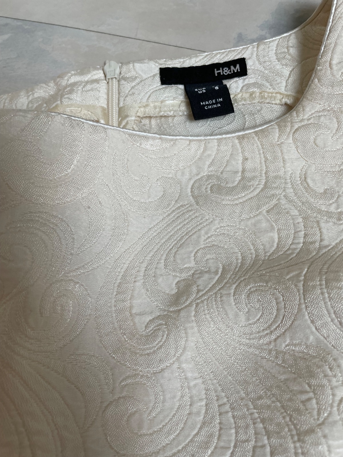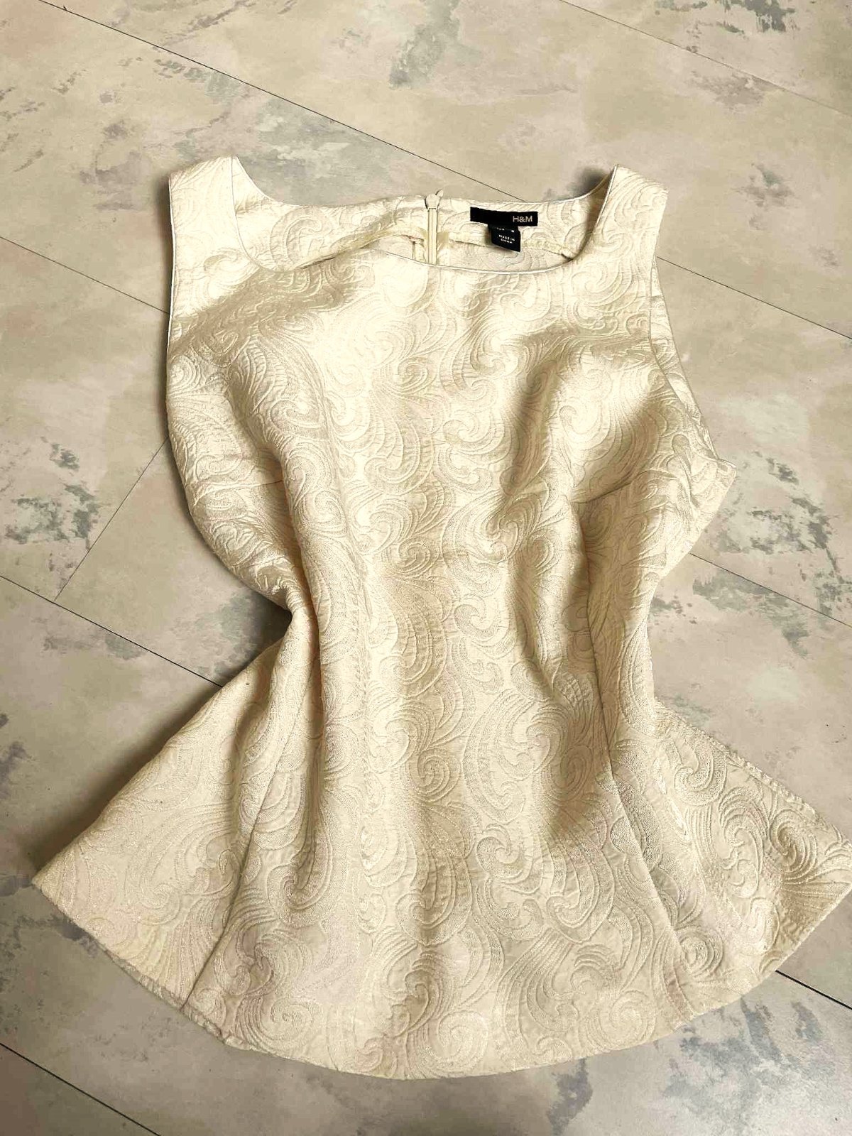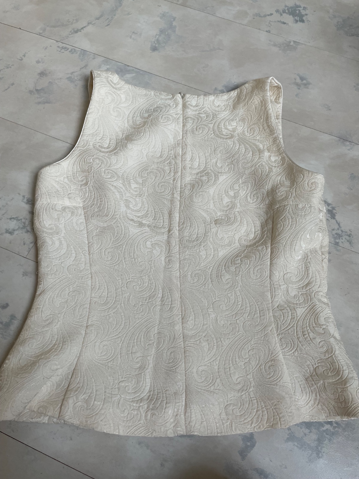 krásny spoločenský vršok / top,farba jemná smotanovo biela - do krémova, plastické vzory,vhodný k nohaviciam,sukni,do kostýmov, krásne vypracovaný,jemné saténové lemy,princesový strih,je do pása,vzadu jemný zipsík,perfektne sedí na postave,obvod pod pazuchou = 46 x 2 cm,dlžka celkom = 54 cm, dlžka od pazuchy dole = 33 cm,pás cca 38 - 39 x 2 cm
