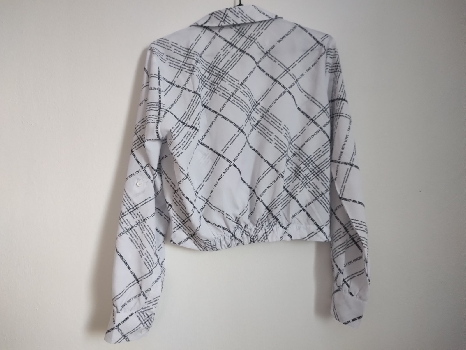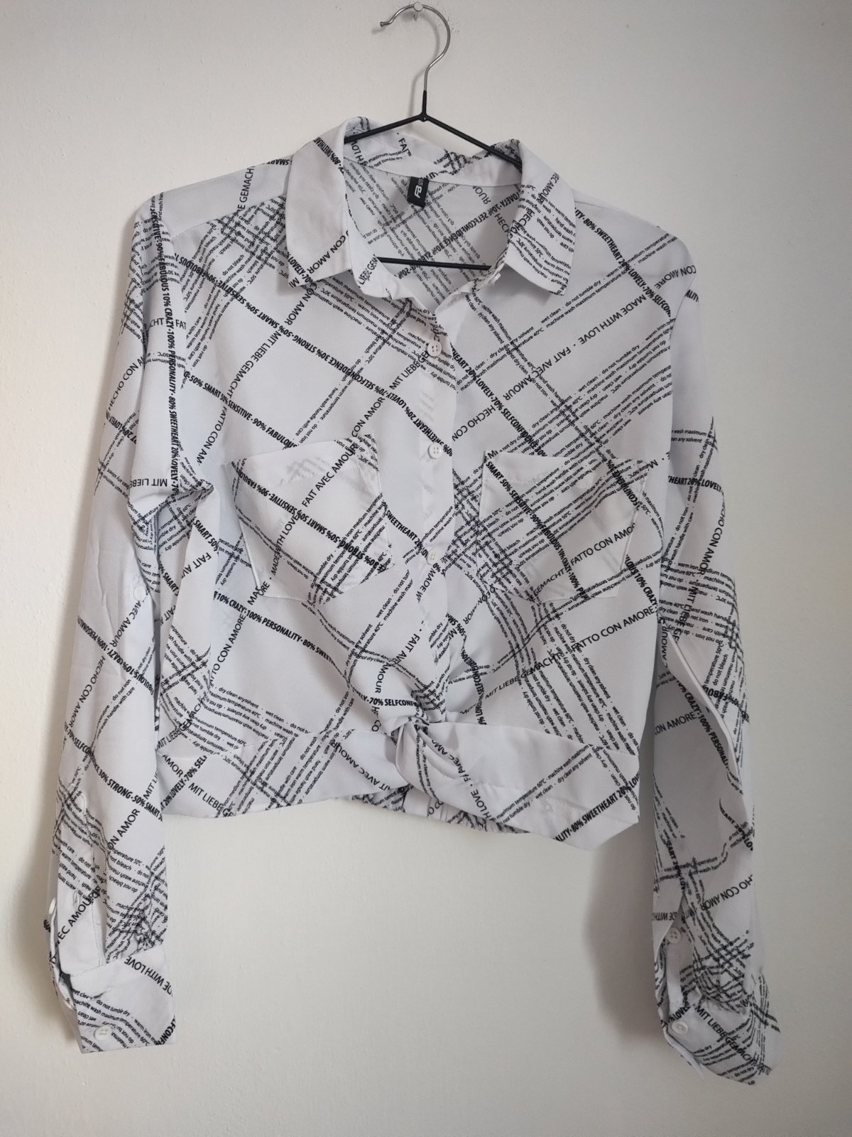 Košeľa jemne crop s potlačou. Rukávy sa dajú nastaviť aj na krátke.