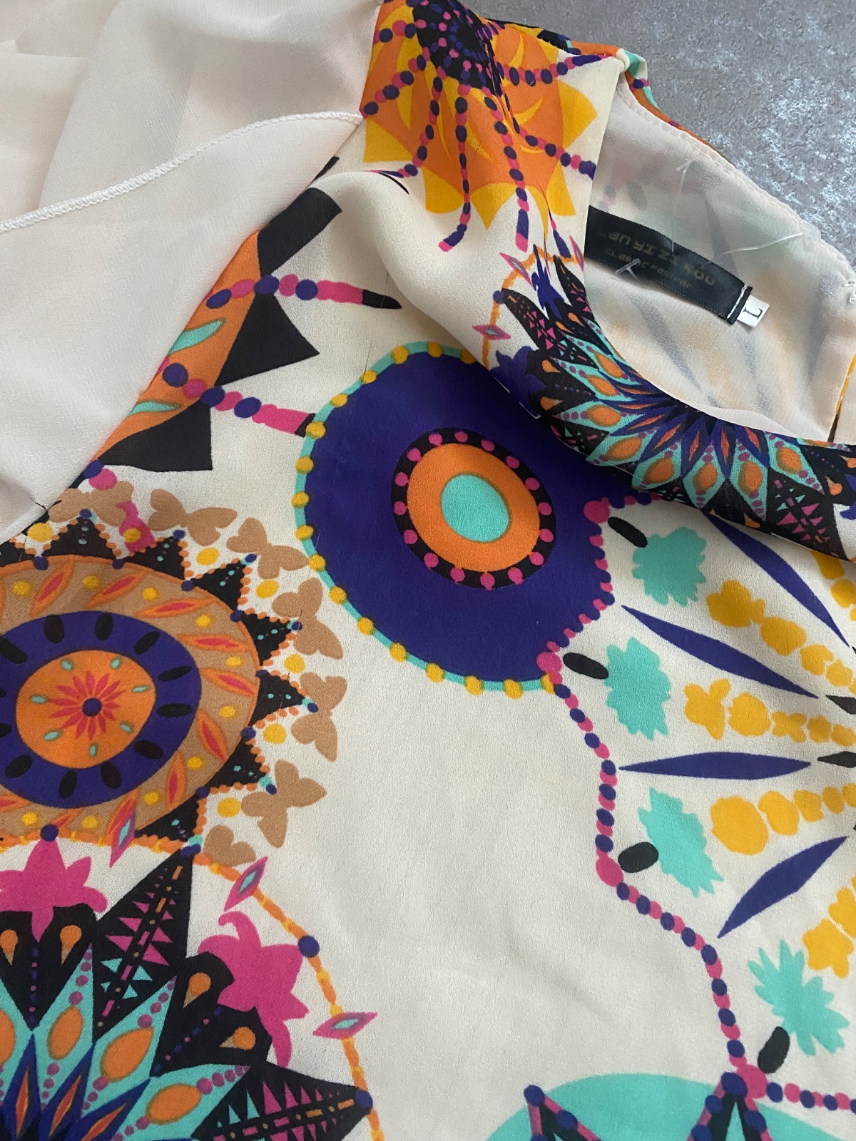 Príjemná blúzka/tunika z gázoviny, je podšitá inou. Veľkosť menšia, ako sa uvádza, preto zadávam M. Nosila som málo, len v tehotenstve, top stav.