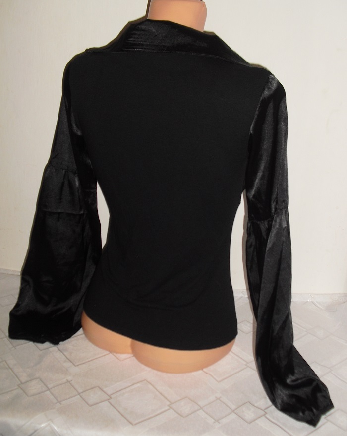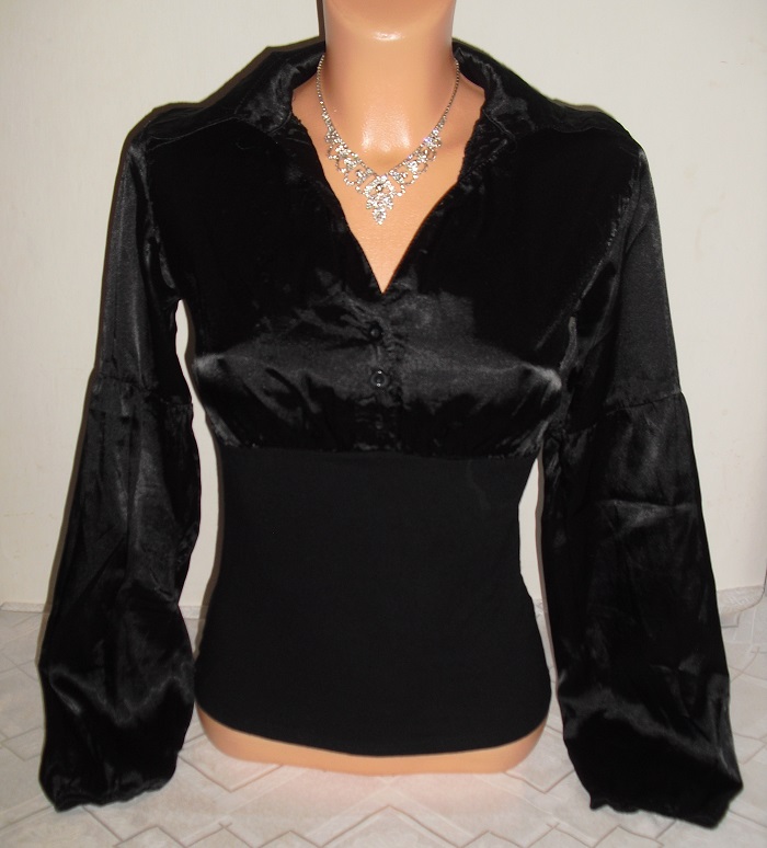 predam nadhernu ciernu bluzocku, elegantna, bussines, satenova s jemnuckou bavlnou, velkost uvedena m/l, ale ide na s/m. sirka 41,5 cm x 2, dole pod mpoprsim pas 35 cm x 2 az 44 cm x 2, dlzka 54 cm.