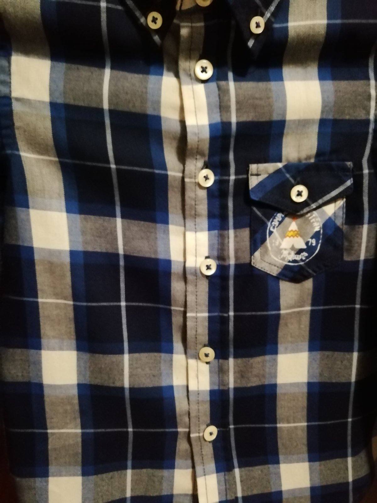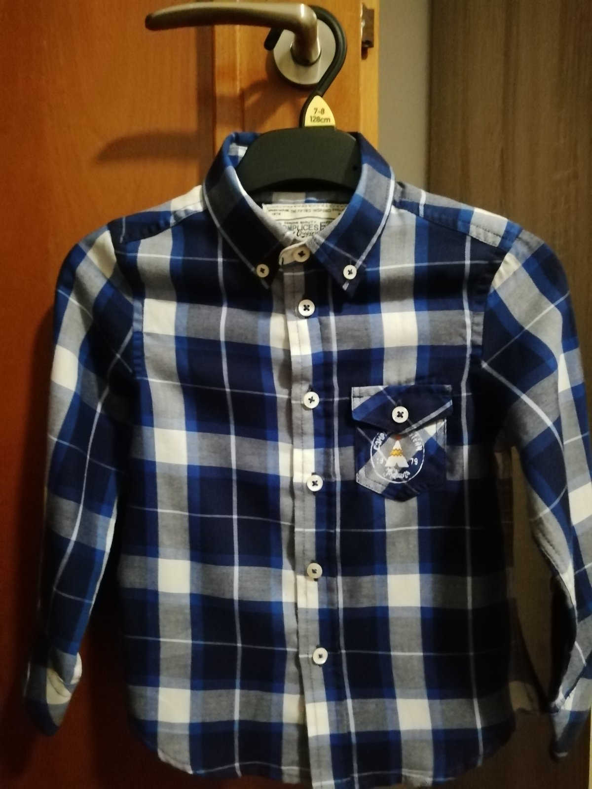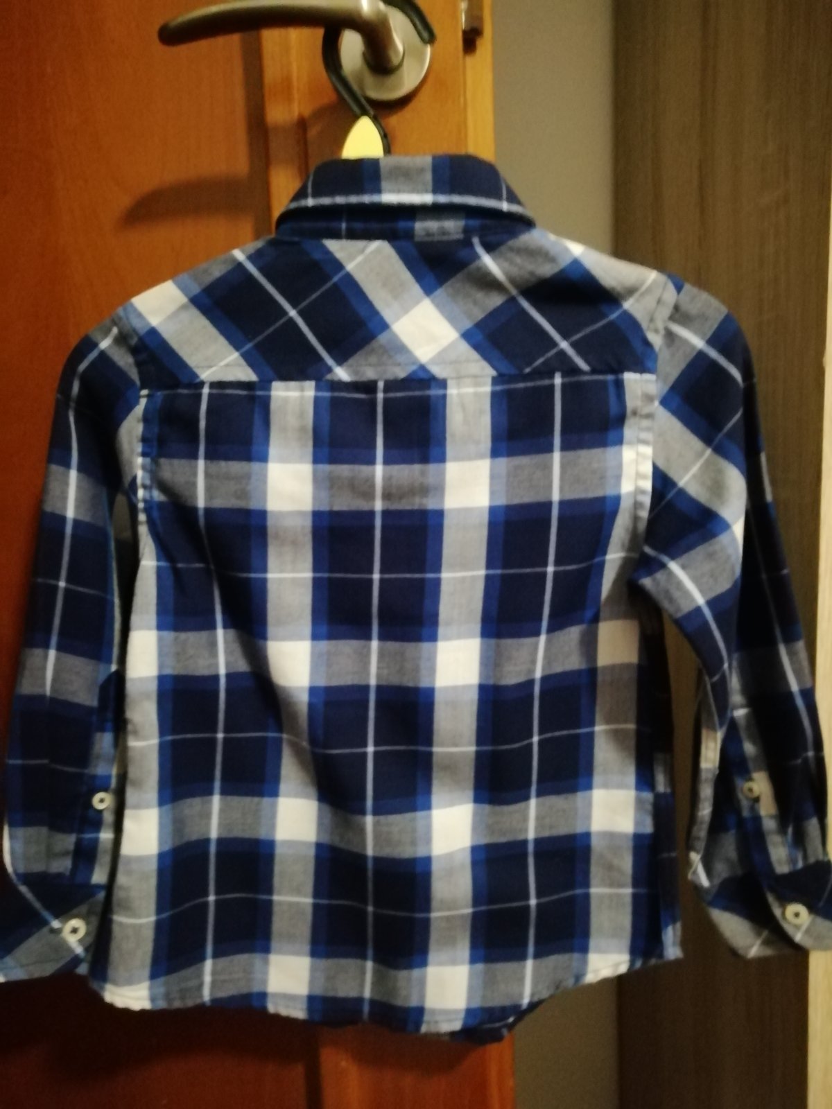 Károvaná košeľa pre chlapca, zn. z Francúzka. Veľ. uvedená na 4 roky, sedí na 104,rozmery: dĺžka 44 cm, šírka 2x31 cm, vnútorný rukáv 28 cm, vonkajší rukáv od prešitia na ramene 37 cm. Výborný stav, ako nová.