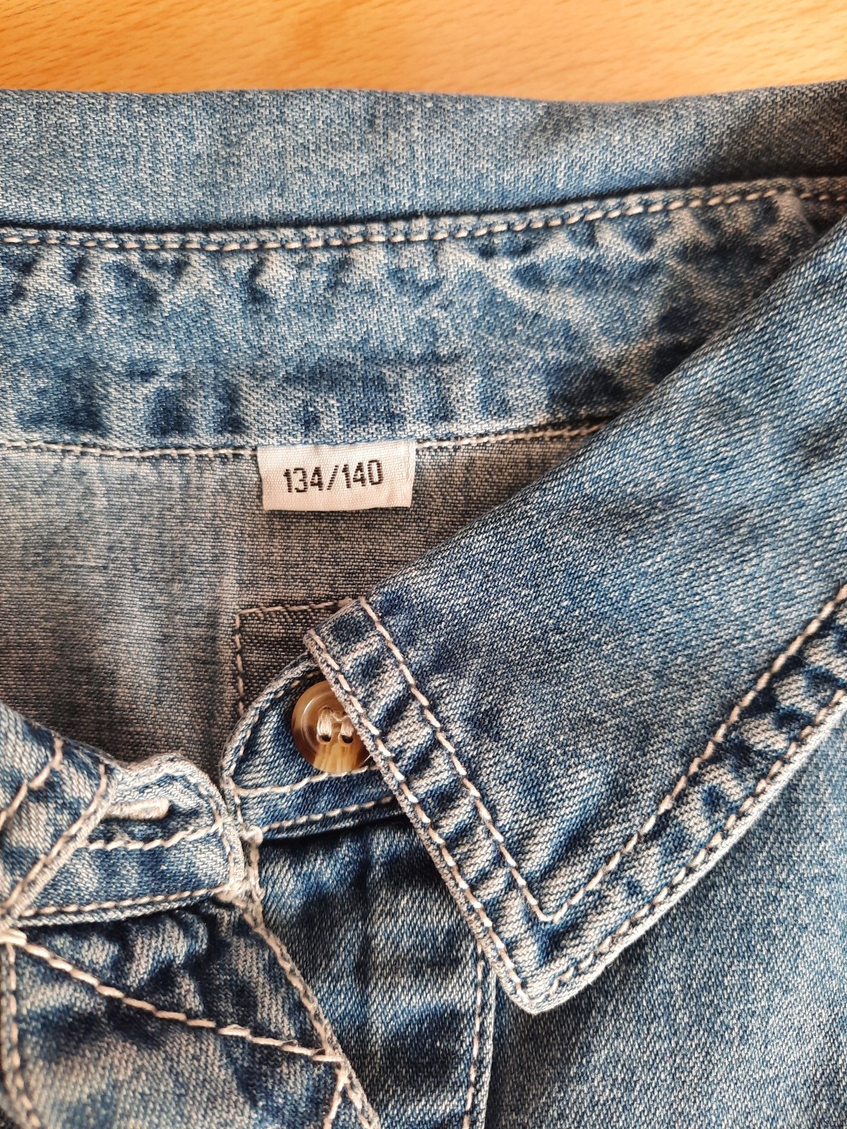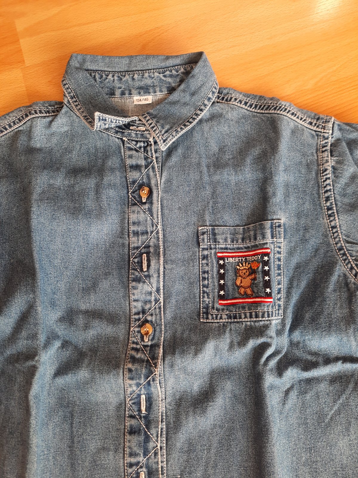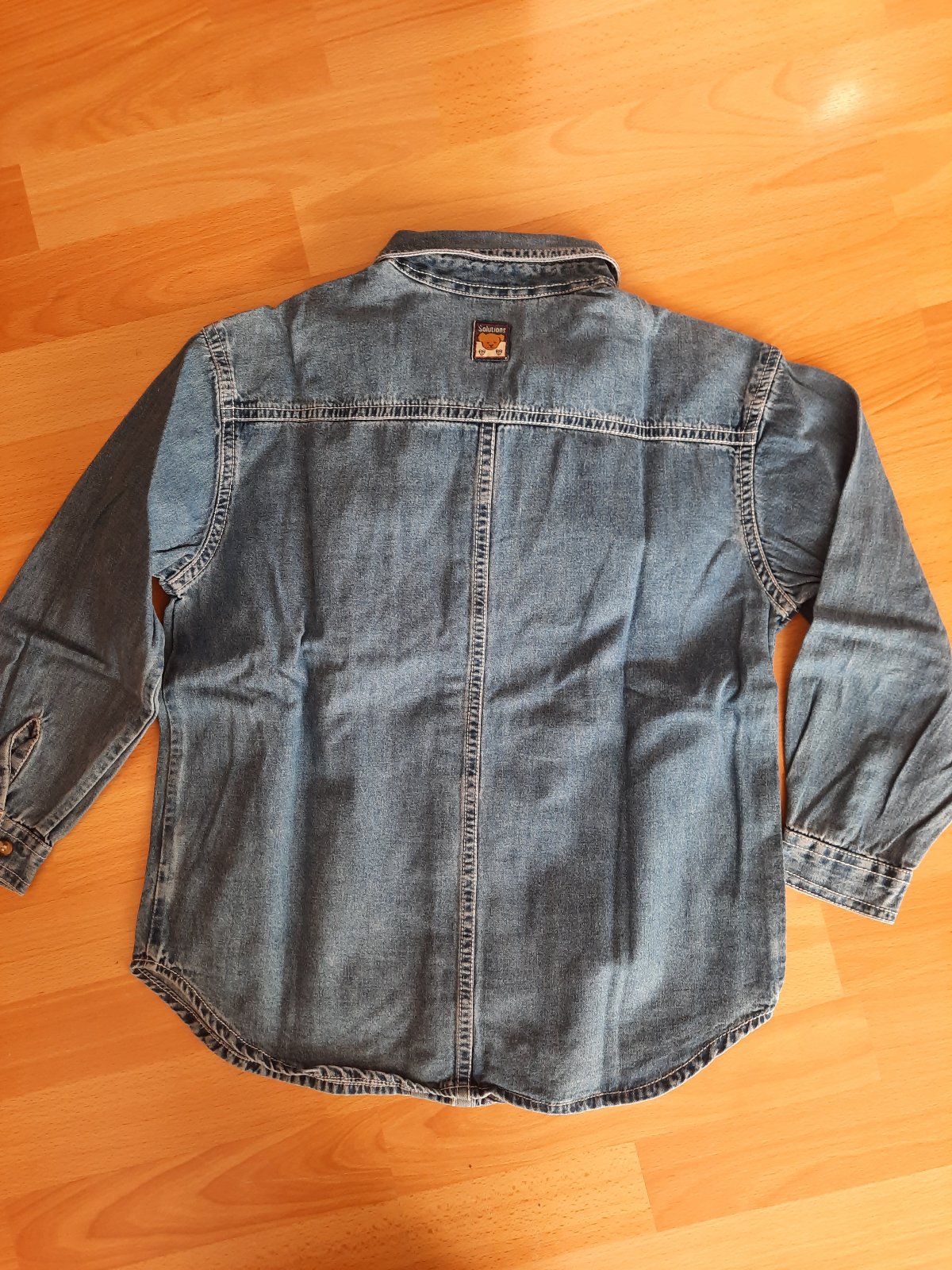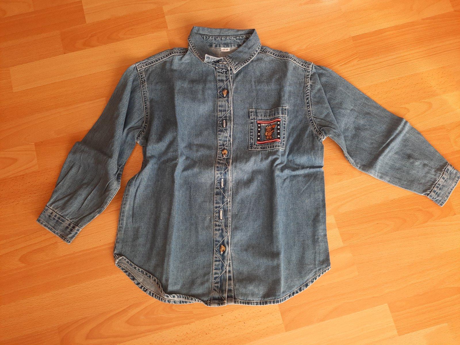 Predám veľmi peknú rifľovú chlapčenskú košeľu modrej farby. Zapínanie je na gombíky, na rukávoch manžety tiež sú na gombíky. Hore vľavo je malý vačok. Spodná časť sa mierne zaobľuje. Košeľa je bez akéhokoľvek poškodenia, vo veľmi dobrom stave. Je to mäkká rifľovina.