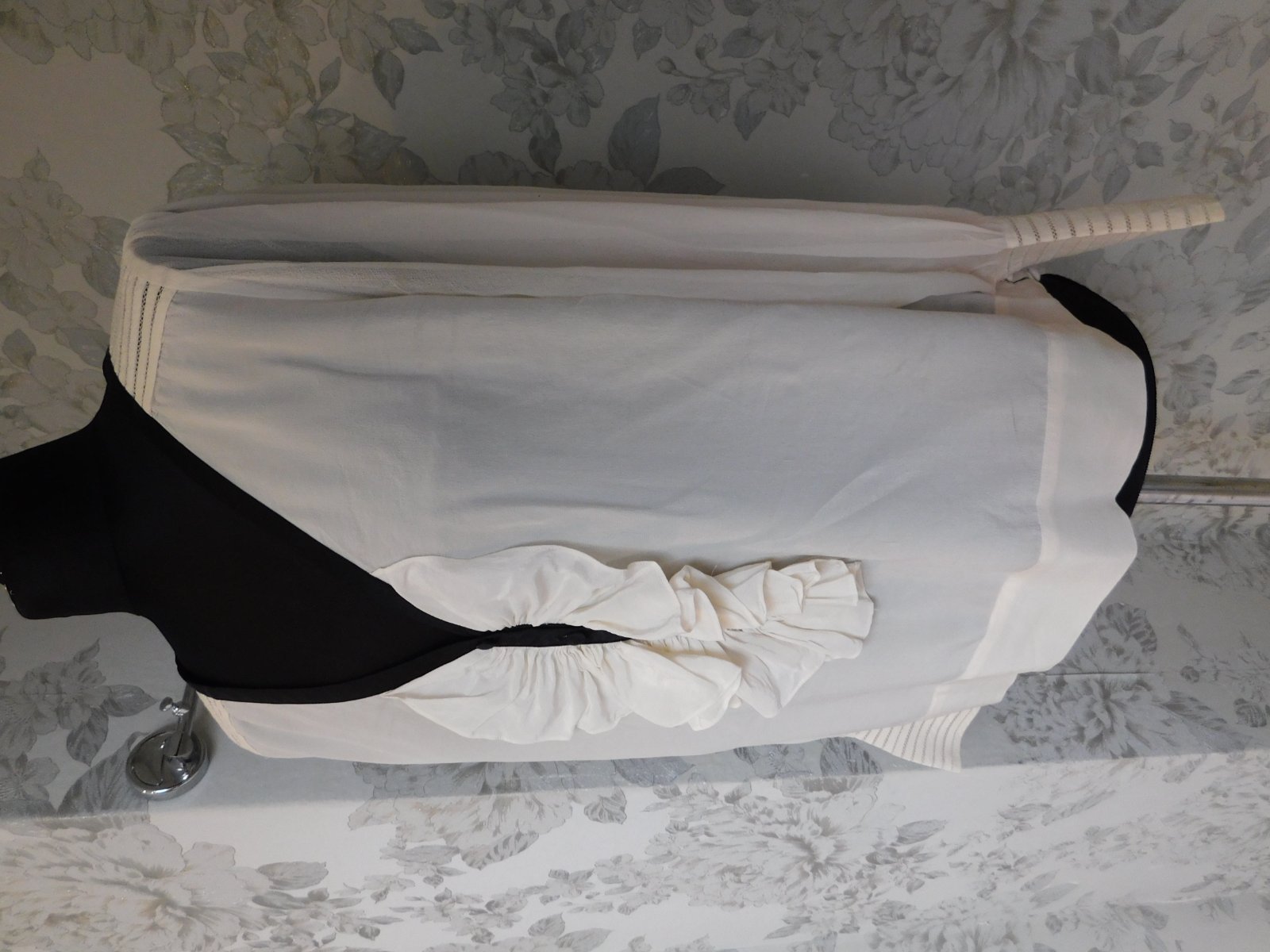 Kvalitna trendy elegantna hodvabna bluzka bielokremovej farby,kontrasne lemovana,rukavy z mierne priesvitneho hodvabneho šifonu.super stav. m