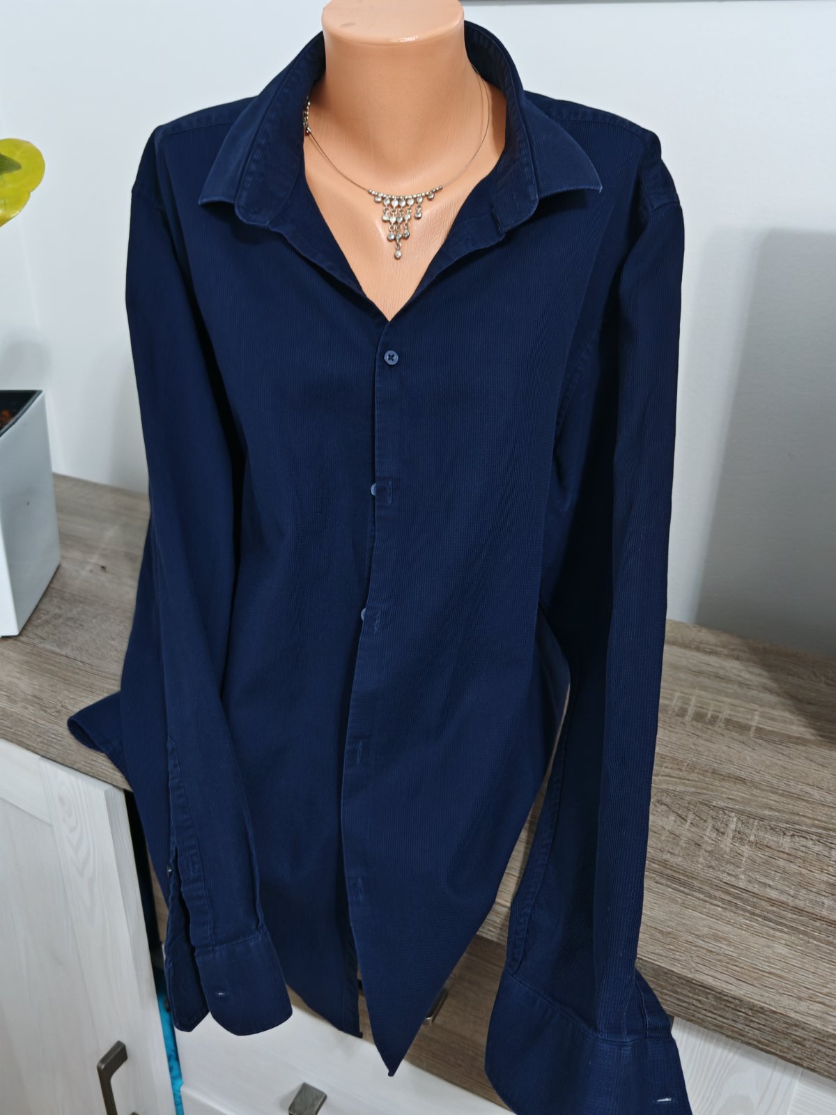Predám krásnu kvalitnú tmavomodrú košeľu,Max 3 x oblečenú,muž ich má veľa,sadne na XL ,alebo 43/44 veľkosti.Top stav.