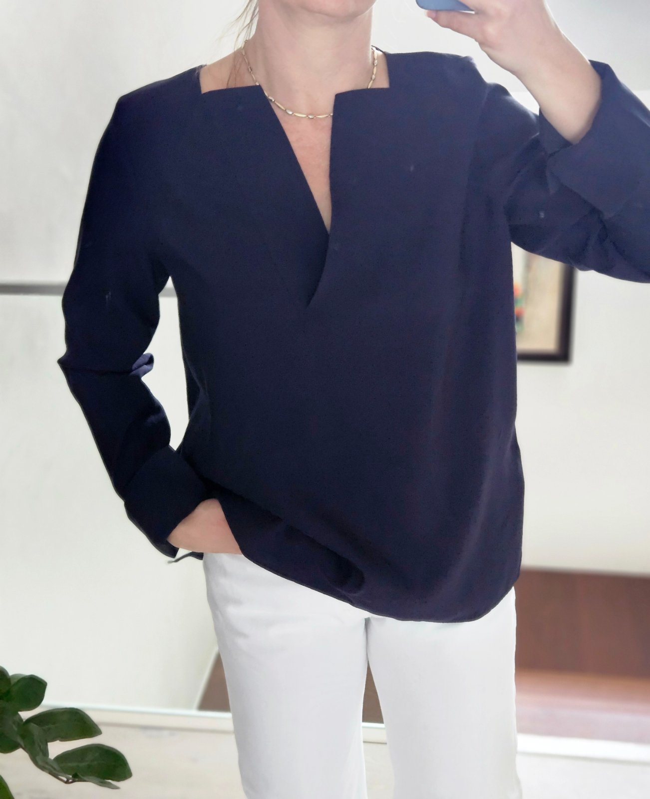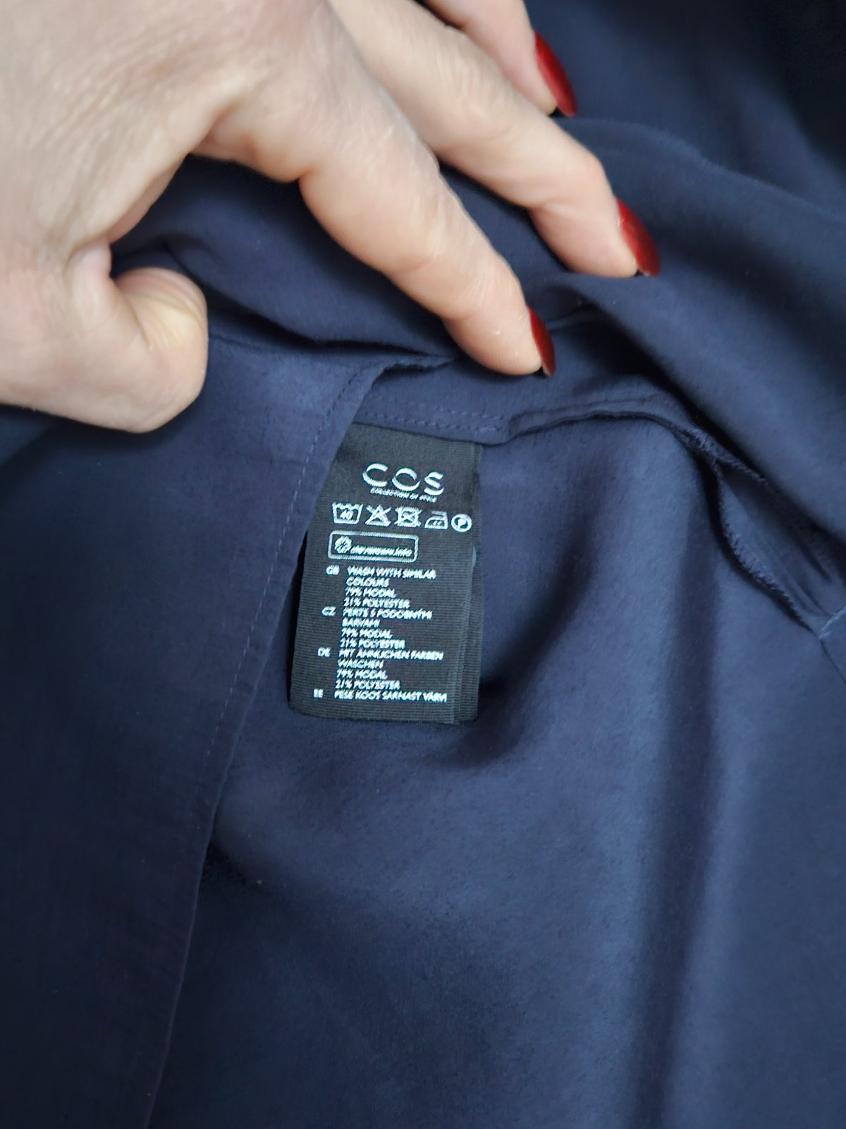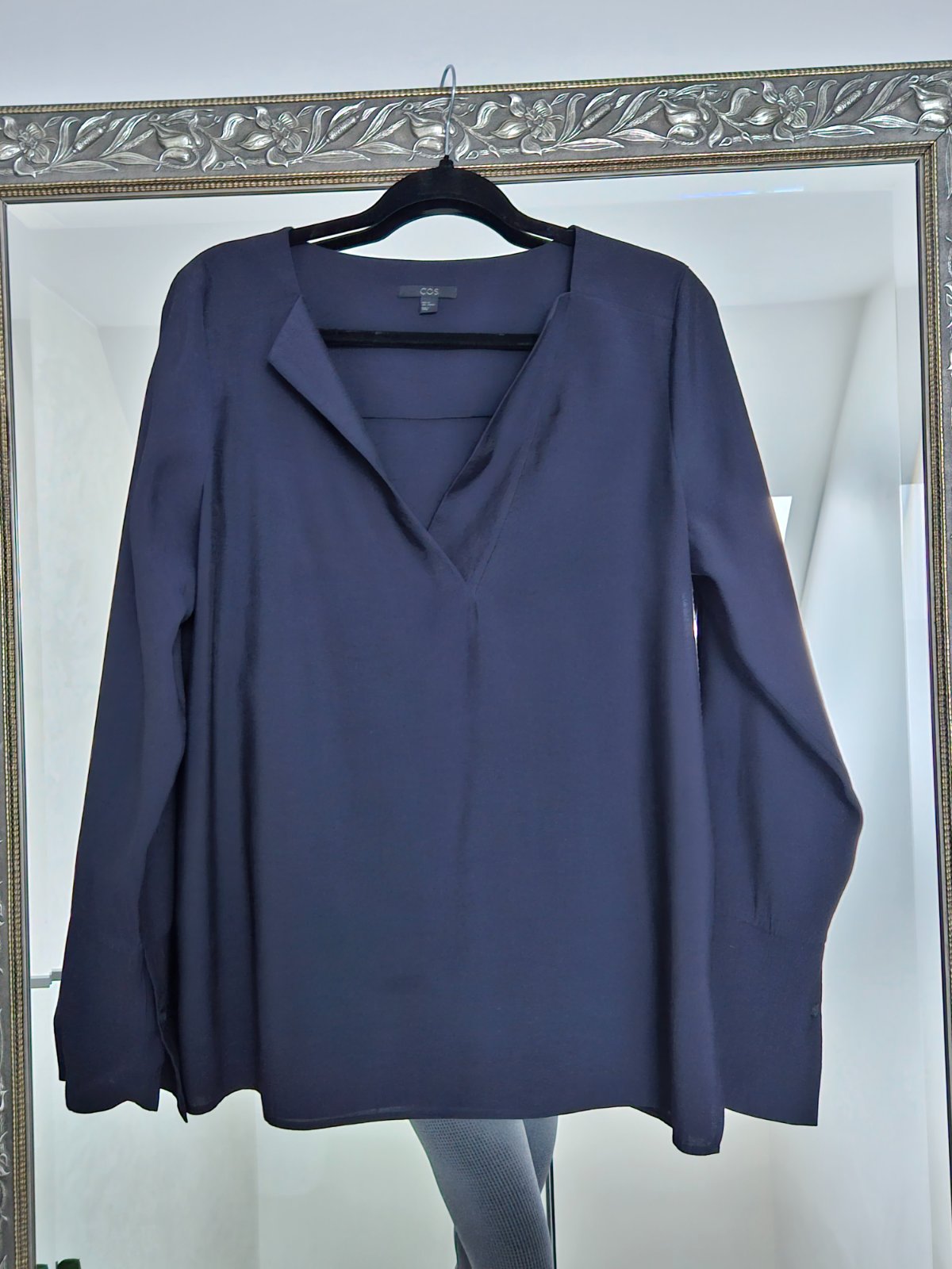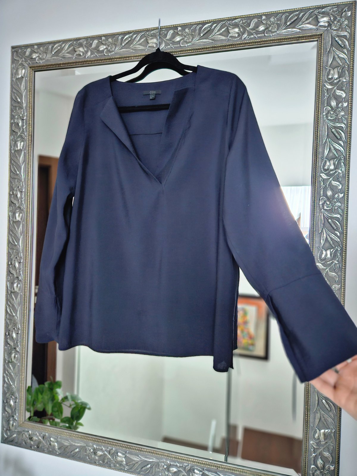 Tmavomodrá blúzka COS s dlhými rukávmi s patentom, ktorý je možné vyhnúť a s pekným dekoltom. Veľkosť 40. Posúvam, lebo by som potrebovala menšiu veľkosť. Top stav.