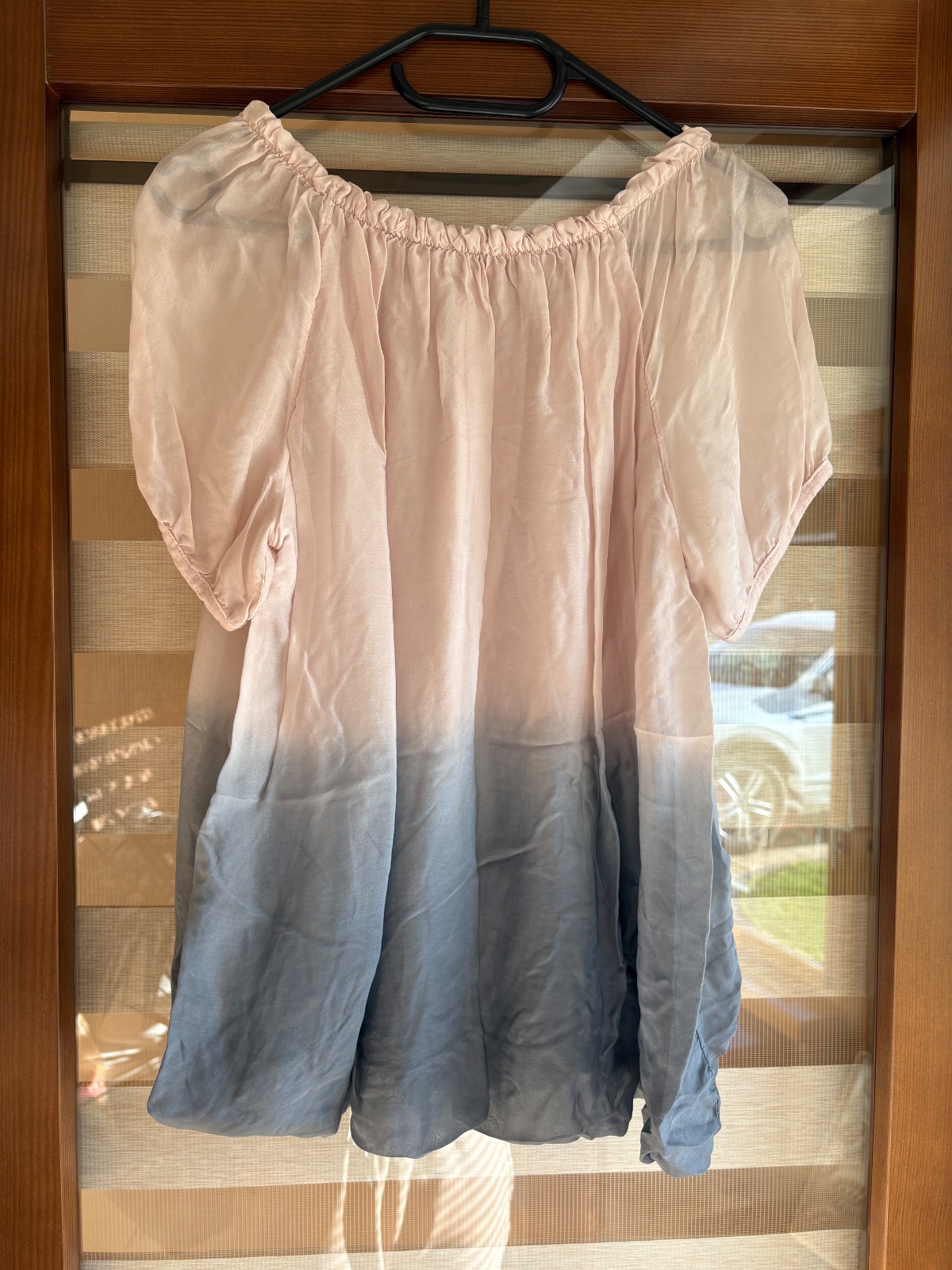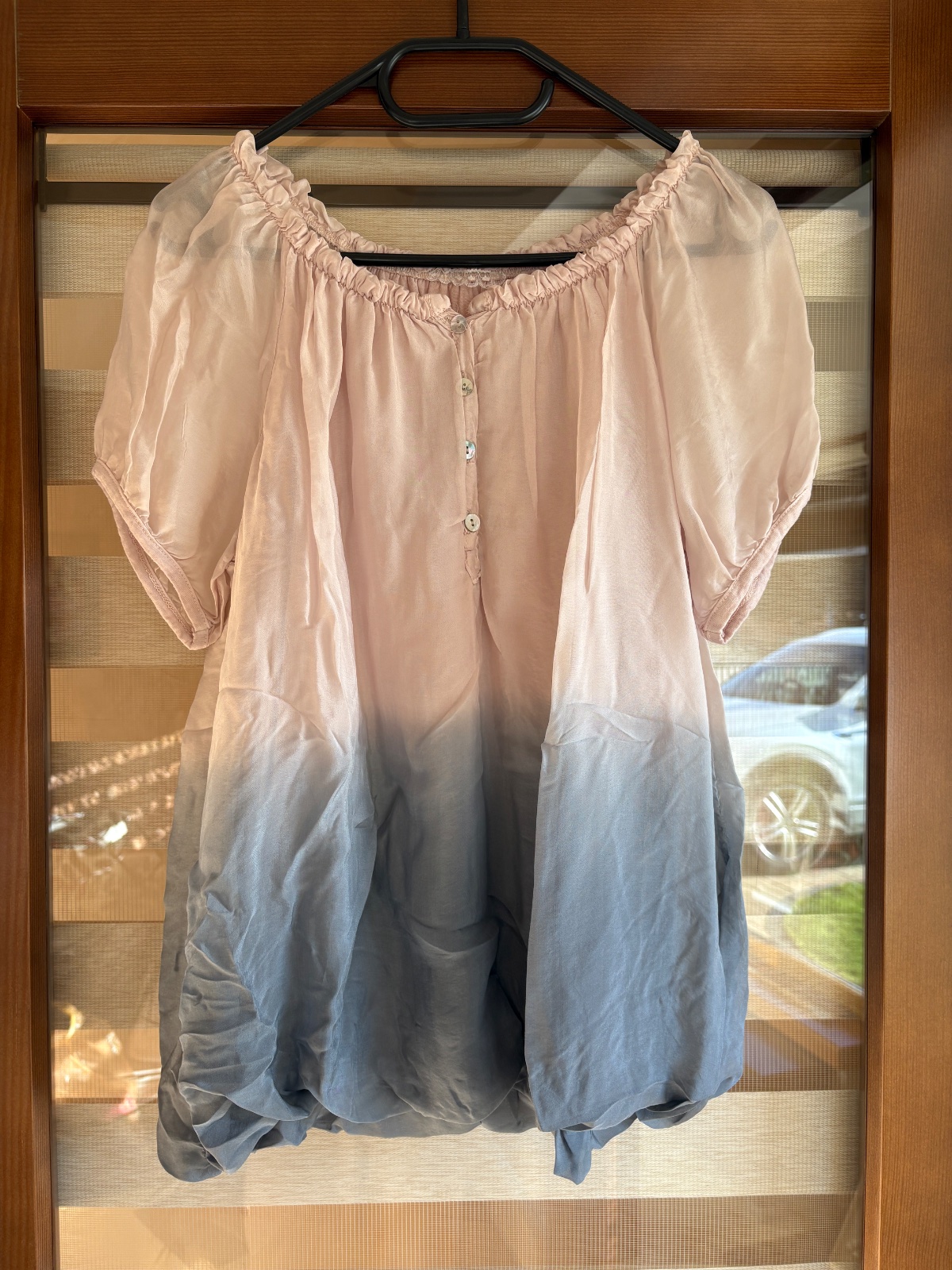 Dlhšia blúzka vo veľmi dobrom stave, žiadne známky nosenia. Gumička je pod prsiami-nie na páse.