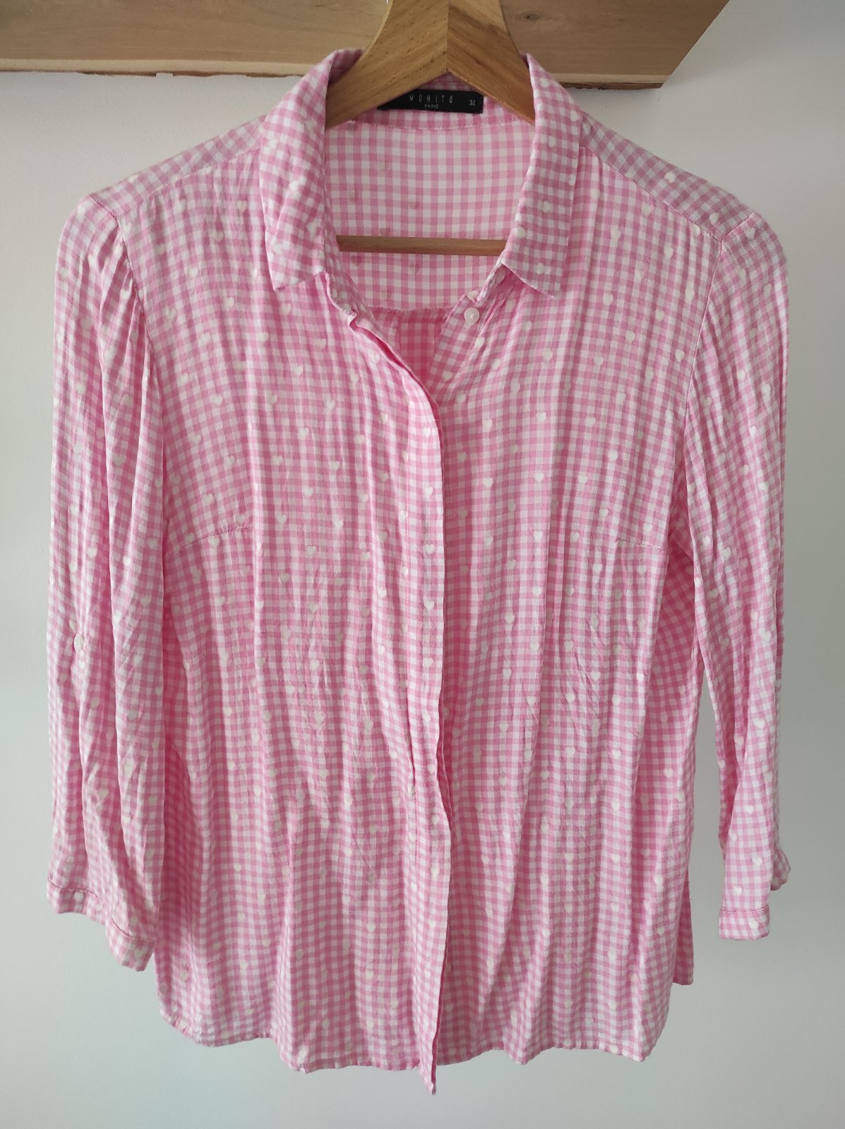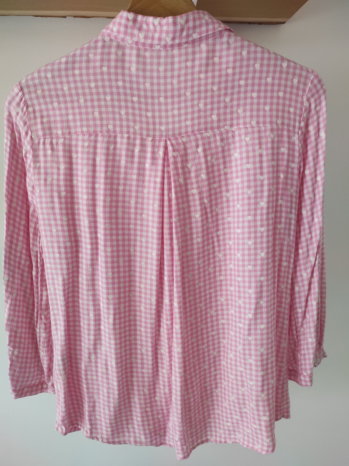 veľmi pohodlná ružovo biela košeľa so srdiečkami, veľkostne sedí aj na väčšiu velkost