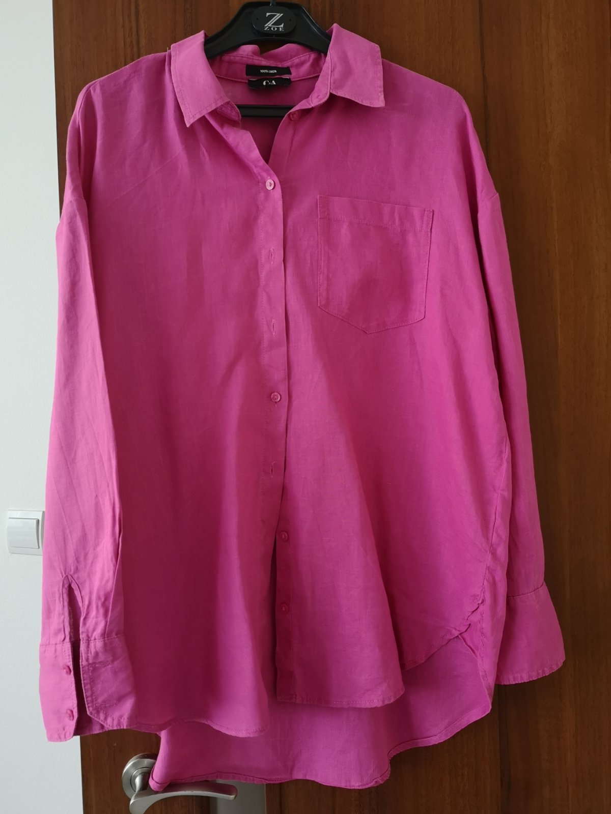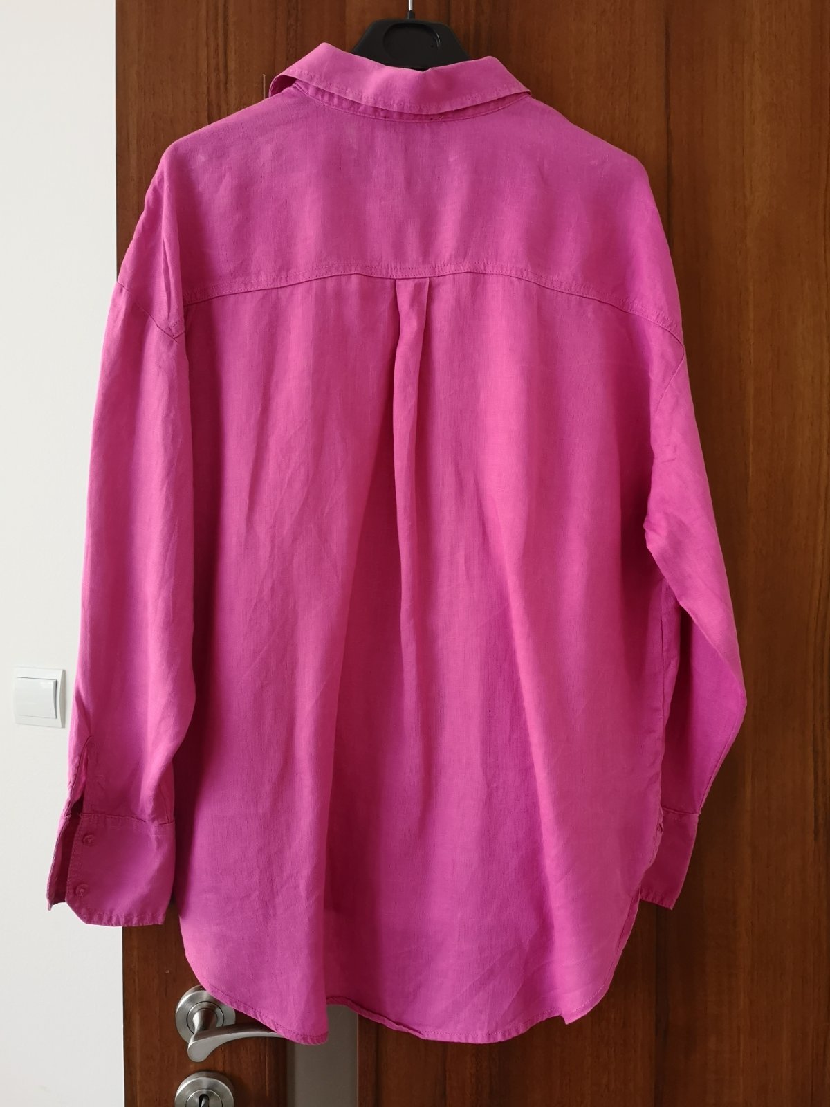 Cyklamenová oversize ľanová košeľa