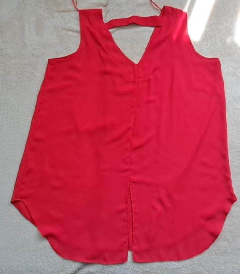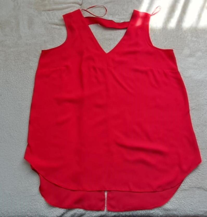 Blúzka na horúce leto, pár krát oblečená ako nová, bez škvŕn a poškodenia. Krásna červená farba, materiál tenučký polyester. Veľkosť UK 16, EUR 44.