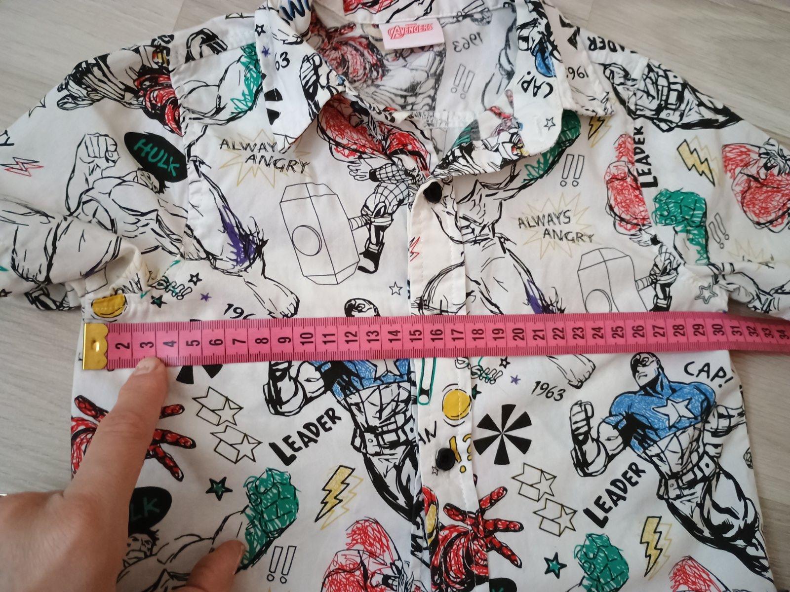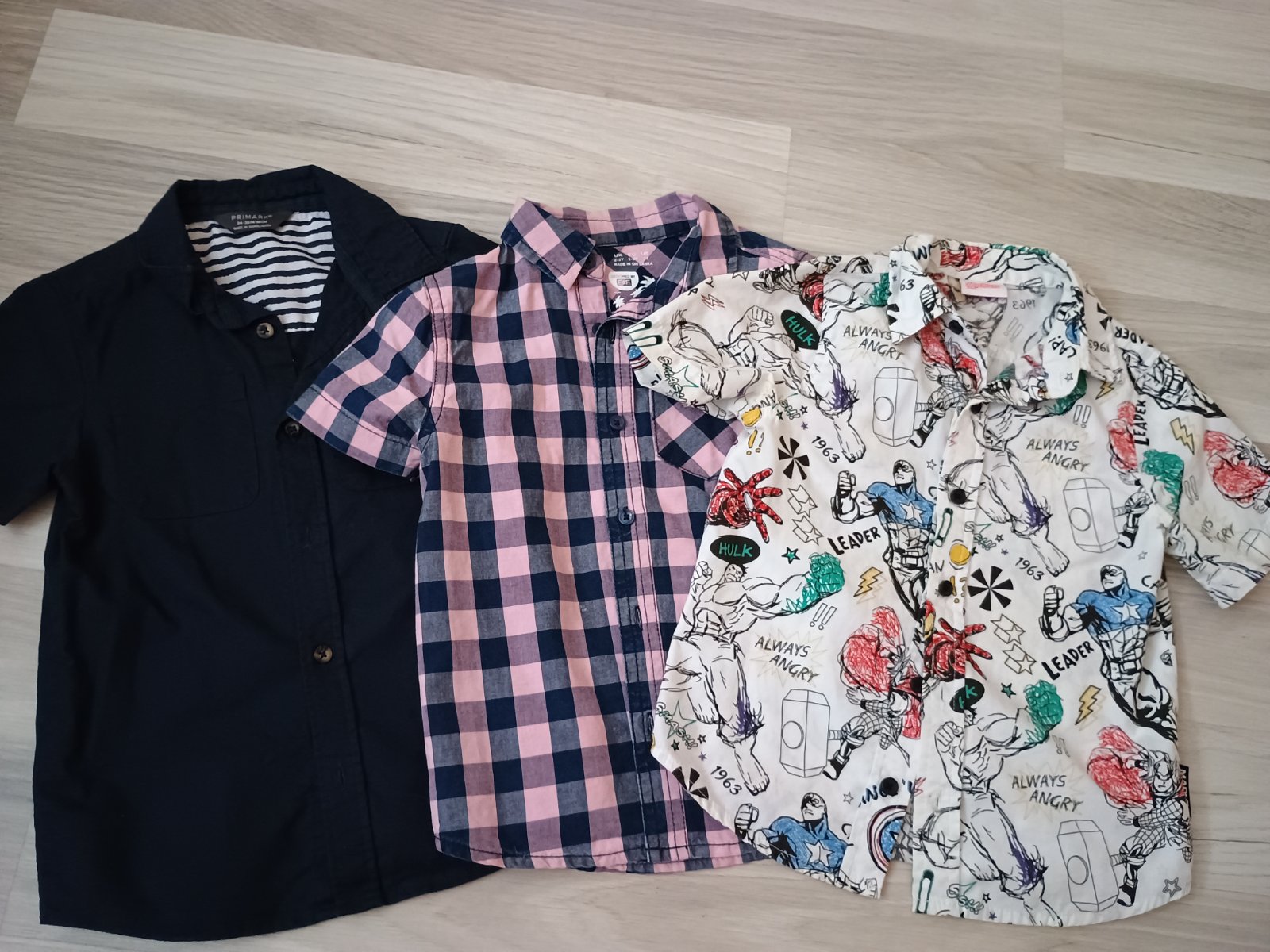 Predám 3ks chlačenských košiel s krátkym rukávom nosených mojim synčekom príležitostne počas leta. Veľkosť je 2-3 roky, Marvelovská a kockovaná je značky F&F, tmavomodrá značky Primark, TOP stav.