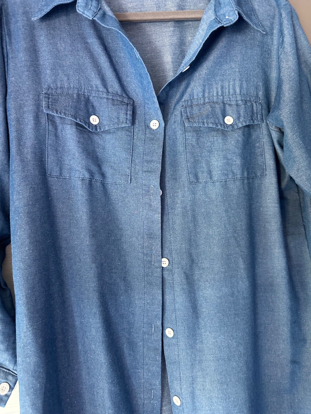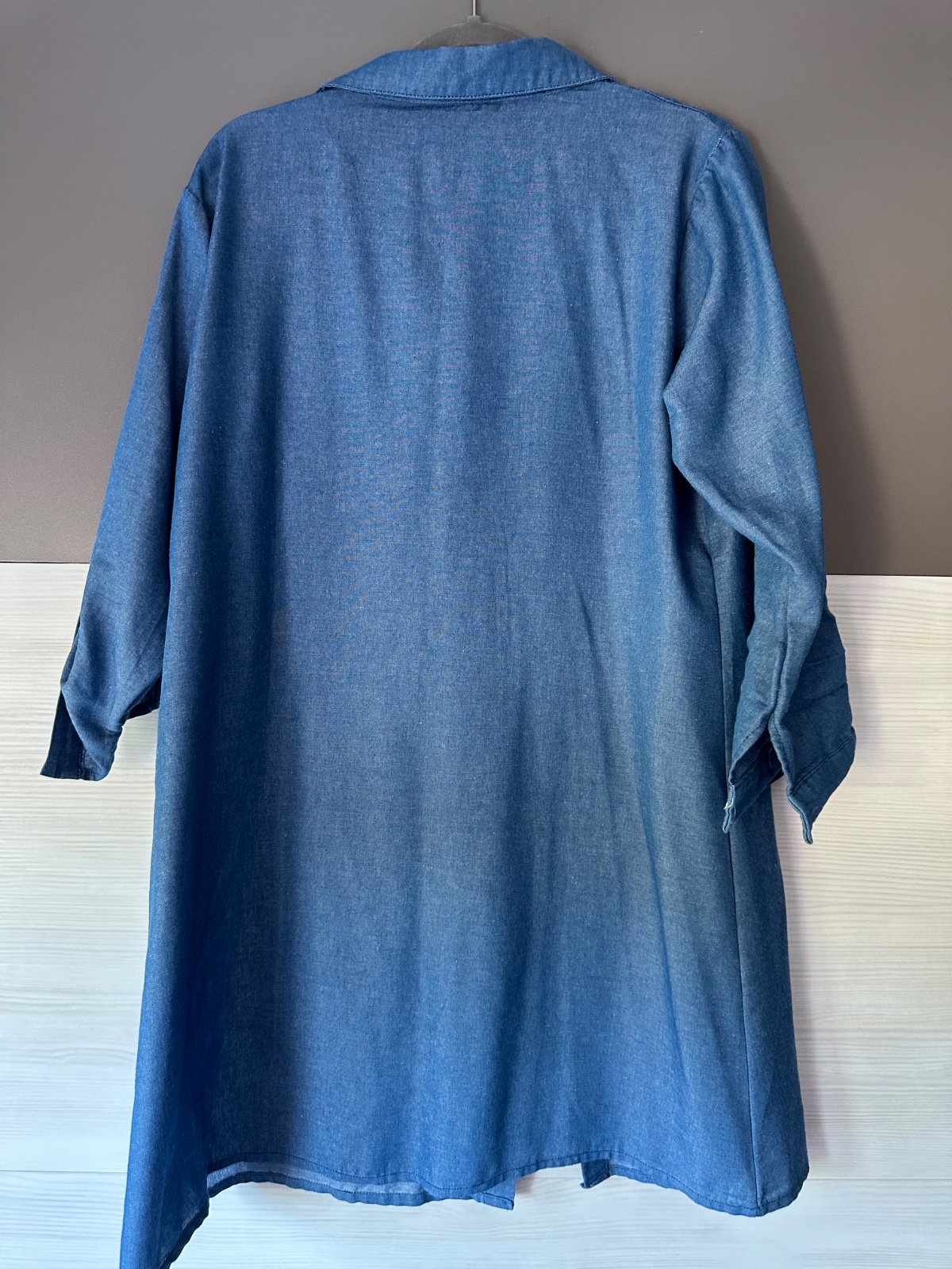 Ponúkam na predaj rifľovú košelu, predlženú, vel. písana 5xl, ale je to také L/XL, cez prsia je to 52 cm x 2.