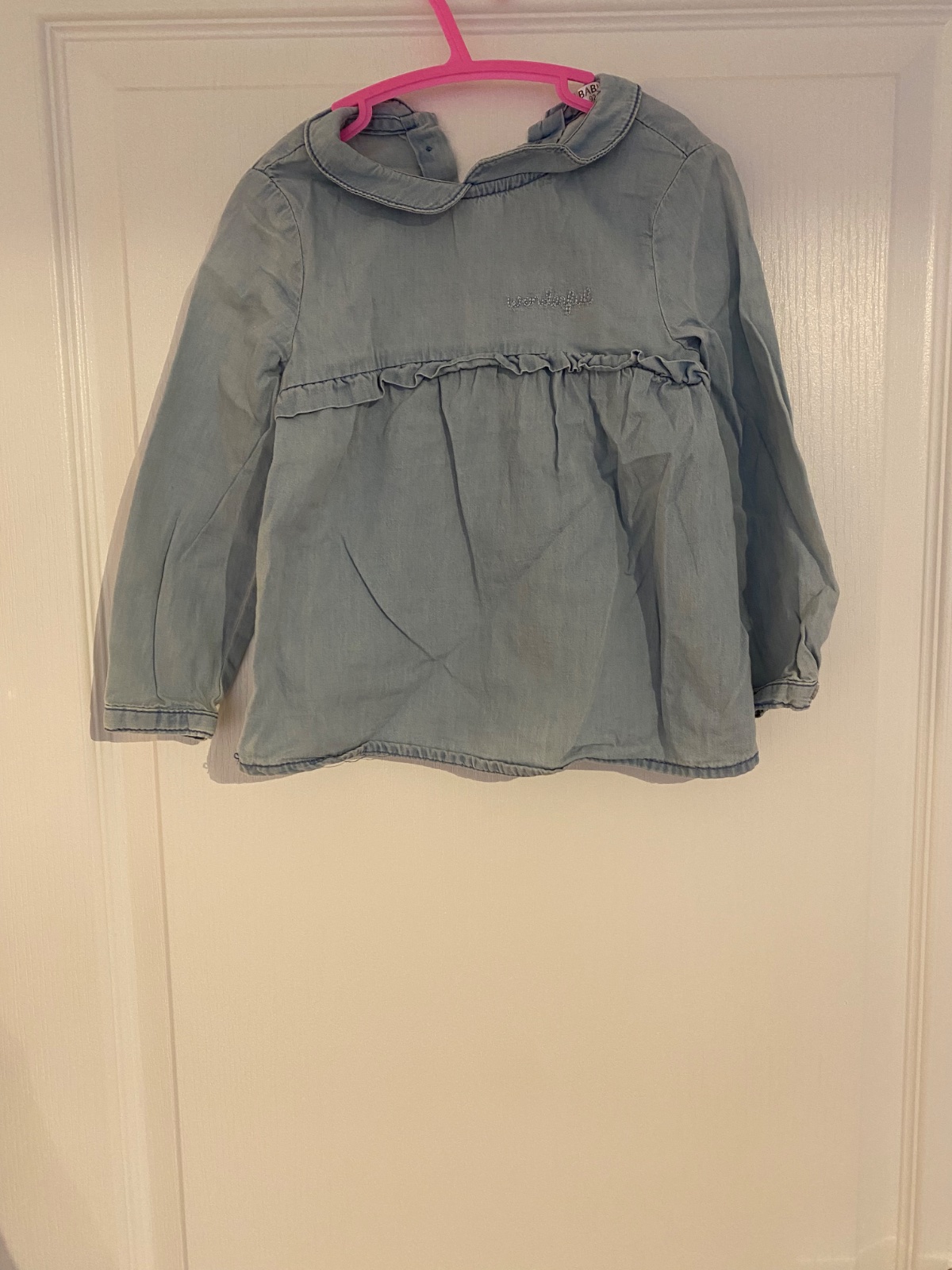 Ľahká riflová košielka málo nosená. Veľkosť 92.Cena 1€ plus poštovné.