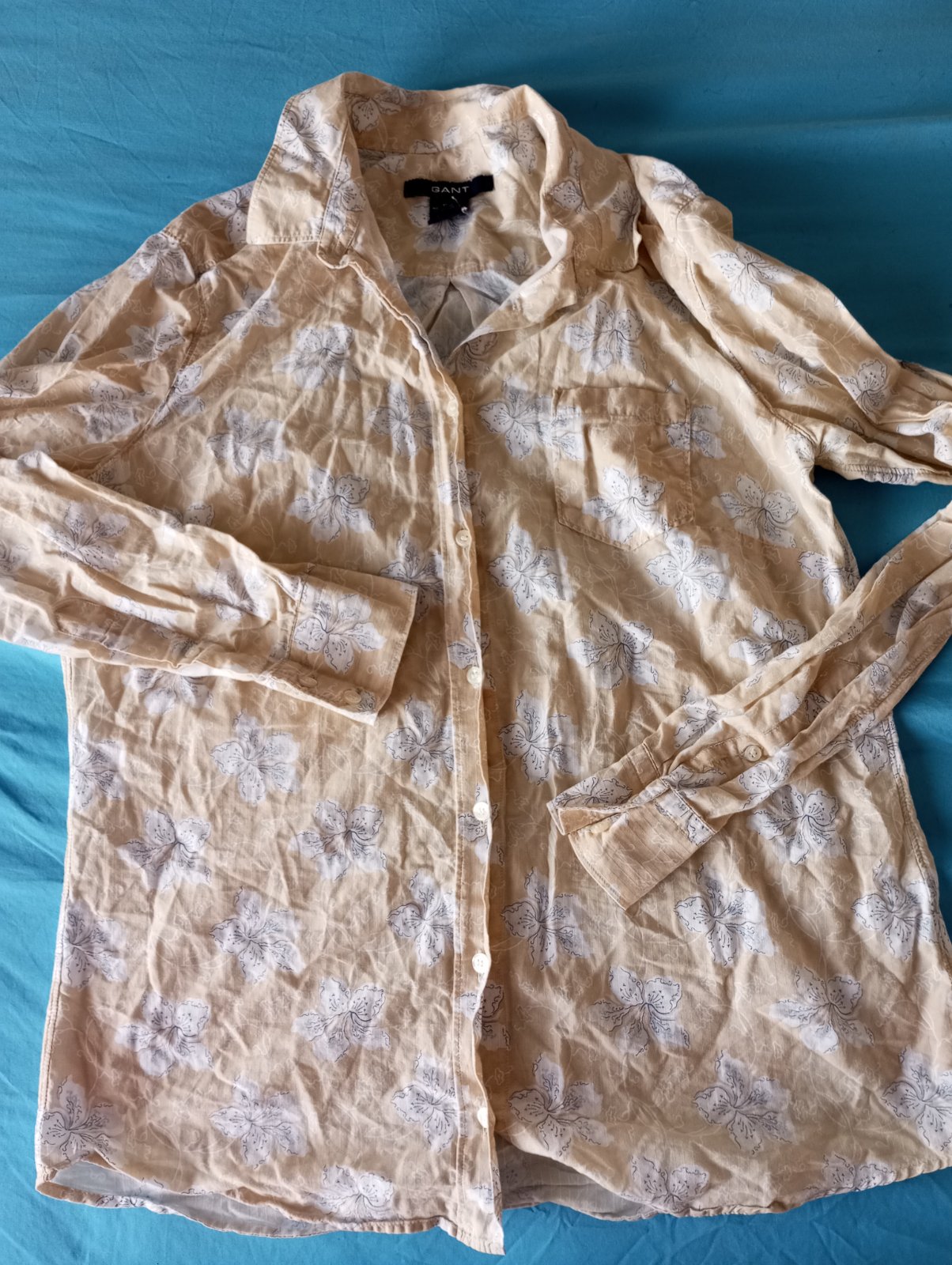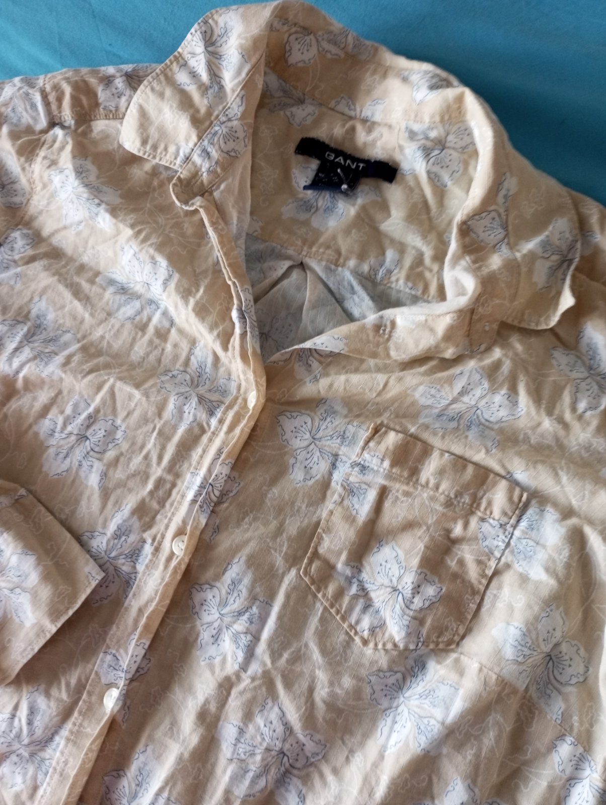 Výborný stav, ako nová, v dolnej časti logo. Na gombíkoch nápis GANT. Šírka popod paže je 52 x 2 cm, celková dĺžka meraná cez stred chrbta je 62 cm.