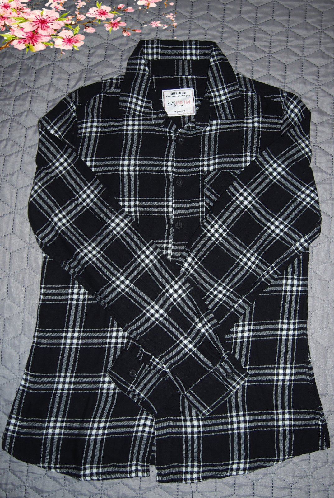 Čierno biela károvaná košeľa v. 158/164