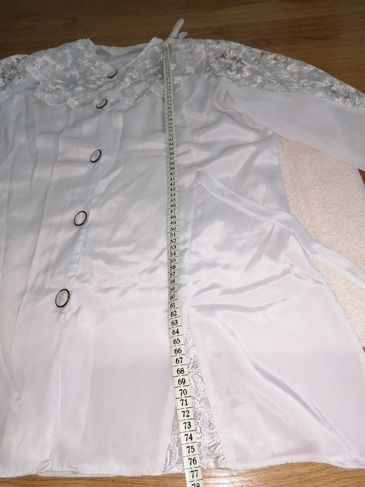 Košeľu som vybrala z vreca,preto je taká pokrčená 🙂 Dá sa nosiť ako s dlhým,tak aj s krátkym rukávom Šírka pod pazuchami 51 cm,dĺžka košele 61 cm,dĺžka rukáva od pleca 47, 5cm,rukáv od krku 57 cm