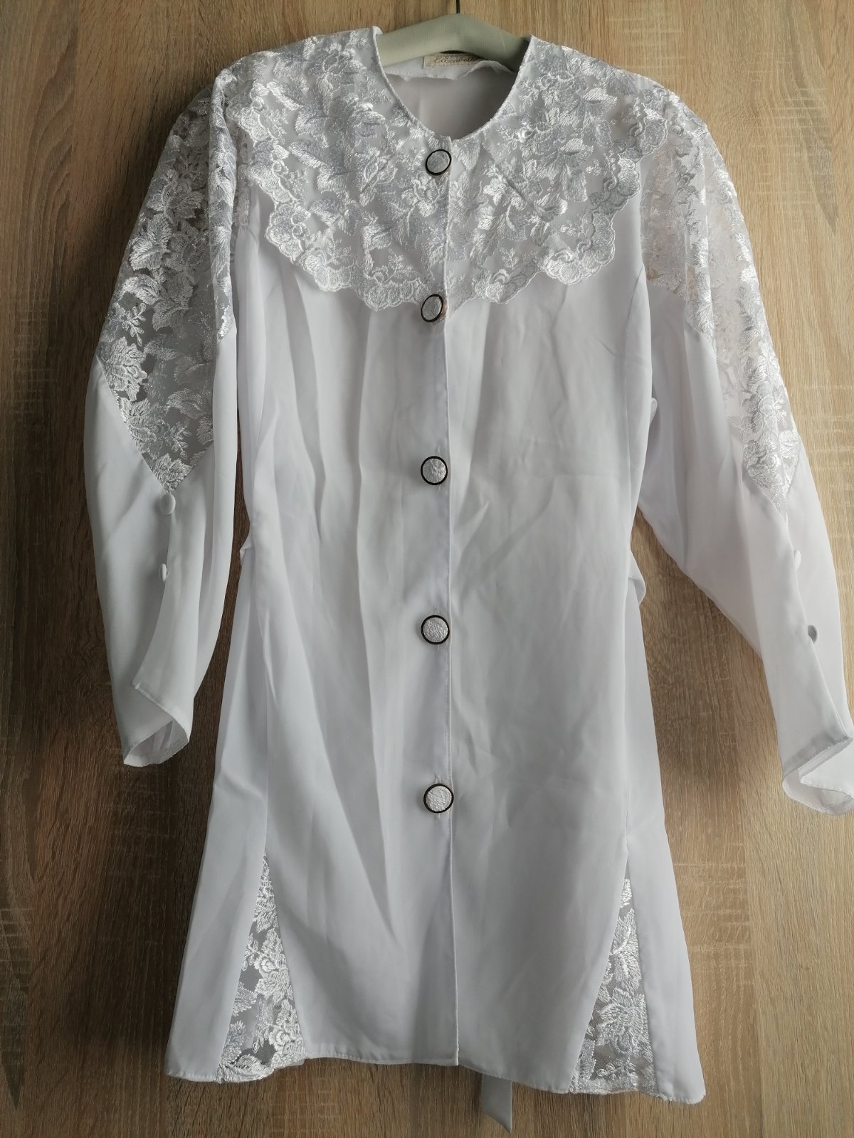 Nová bez visačky, kvalitný, nekrčivý jemný materiál.Šírka pod prsiami 130cm, dľžka predného dielu 63 cm, zadného 73 cm.Rukávy po lakte.