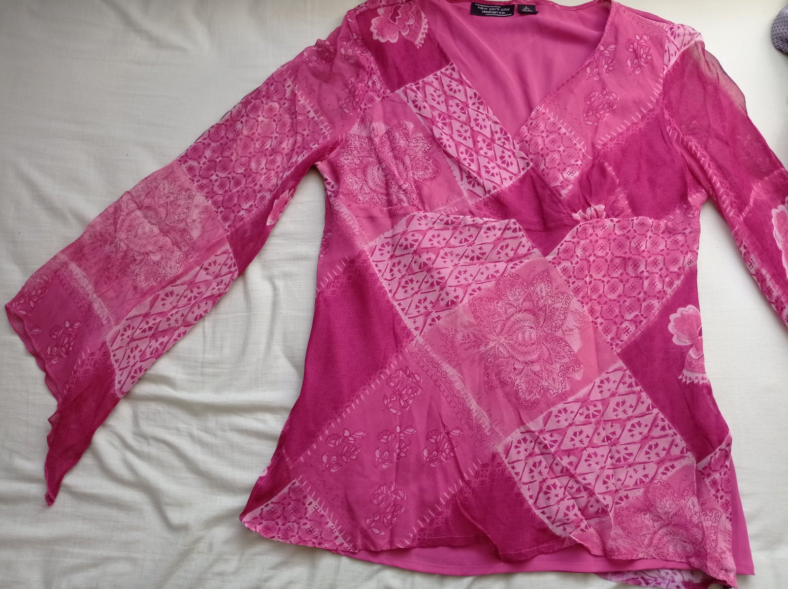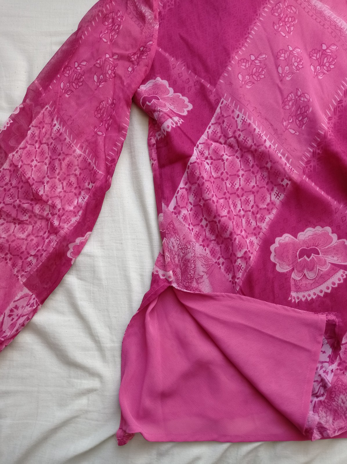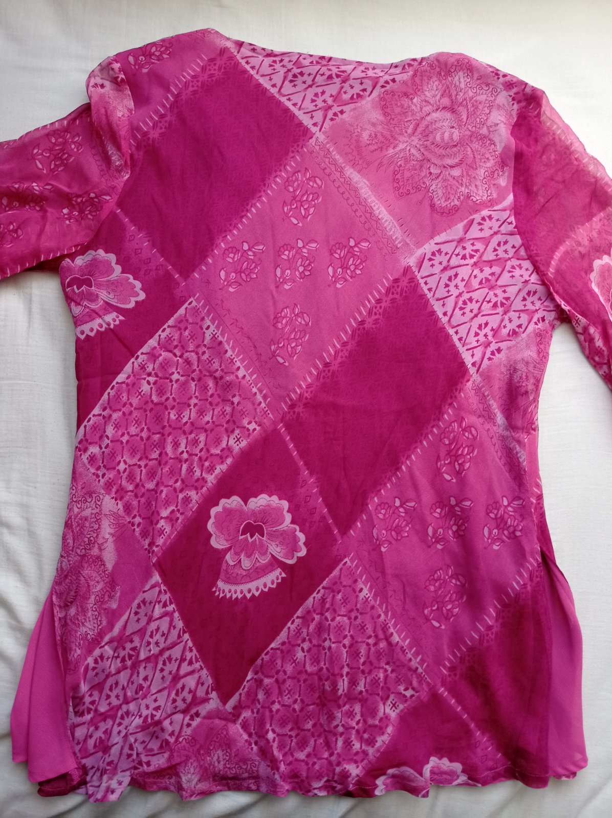 Predám túto tuniku / blúzku, s podšívkou, vhodnou na leto, rukávy úplne priehľadné, dlhé 52cm od podpazušia, 59cm od ramena, blúza dlhá 76cm, široká 57cm v oblasti podpazušia. Top stav, len nutné ožehliť.