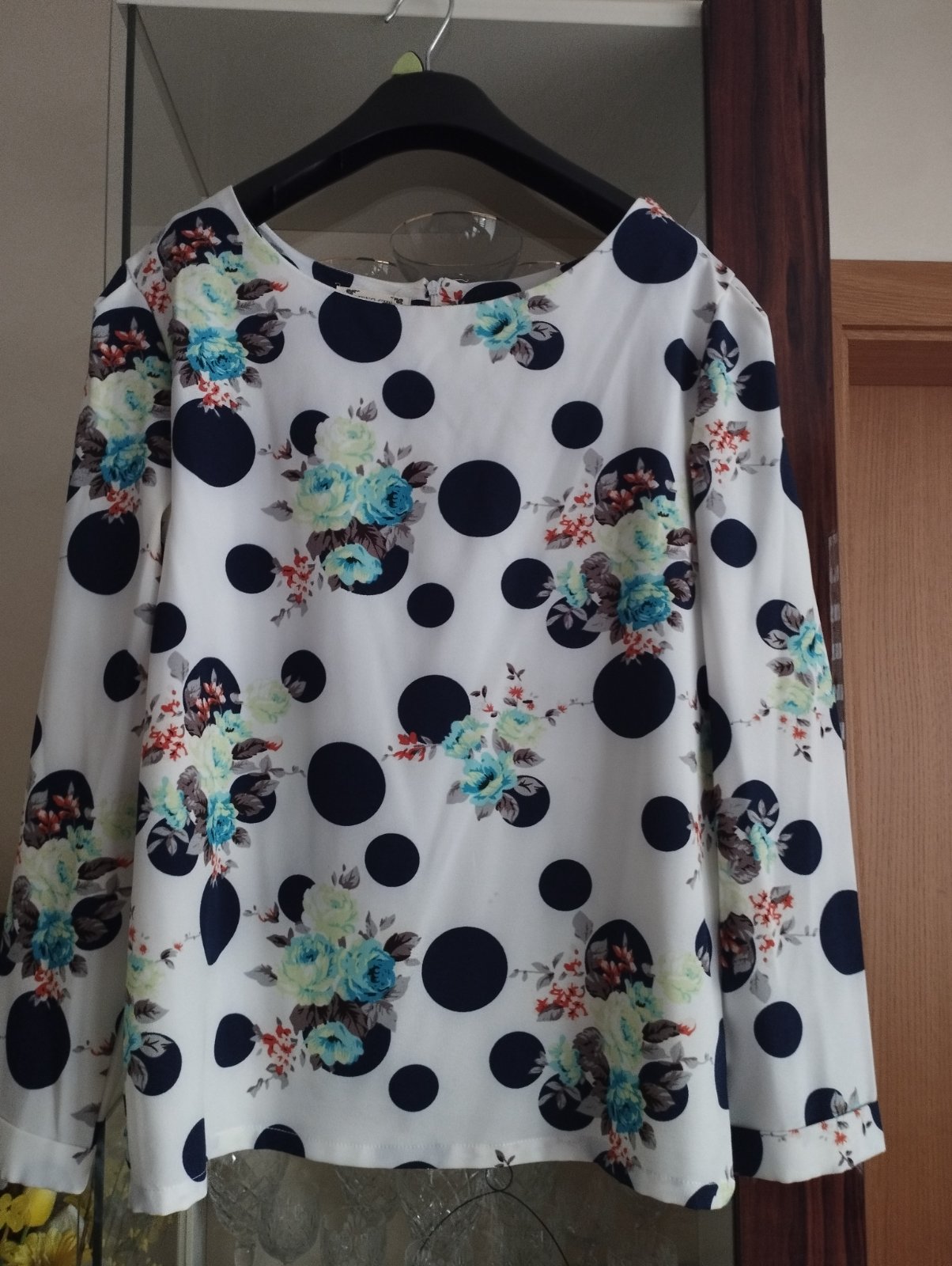 Blúzka z ali express. Na vyššiu postavu. Nesedi mi. Uvedené číslo xl, ale miery tomu nenasvedčujú. Pazuchy 48 cm, rukáv 57 cm, zadný diel od krku 56 cm. Vzadu na zips.