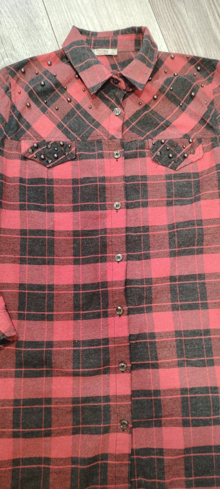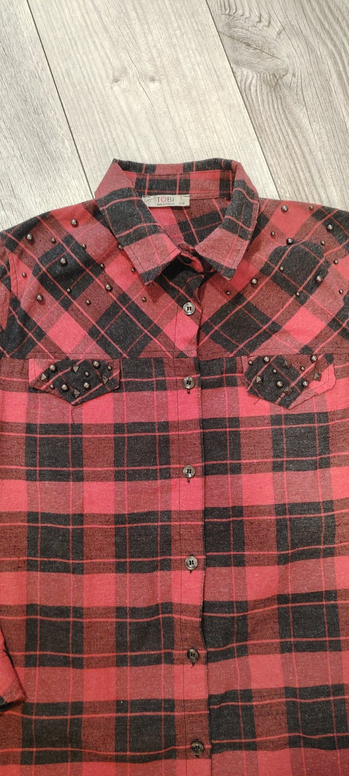 Košeľa ma na miesto zapínania cvoky. Tie sa osuchali vid foto. Celková dĺžka 73cm Obvod hrude 88cm Dĺžka rukáva od ramena 57cm