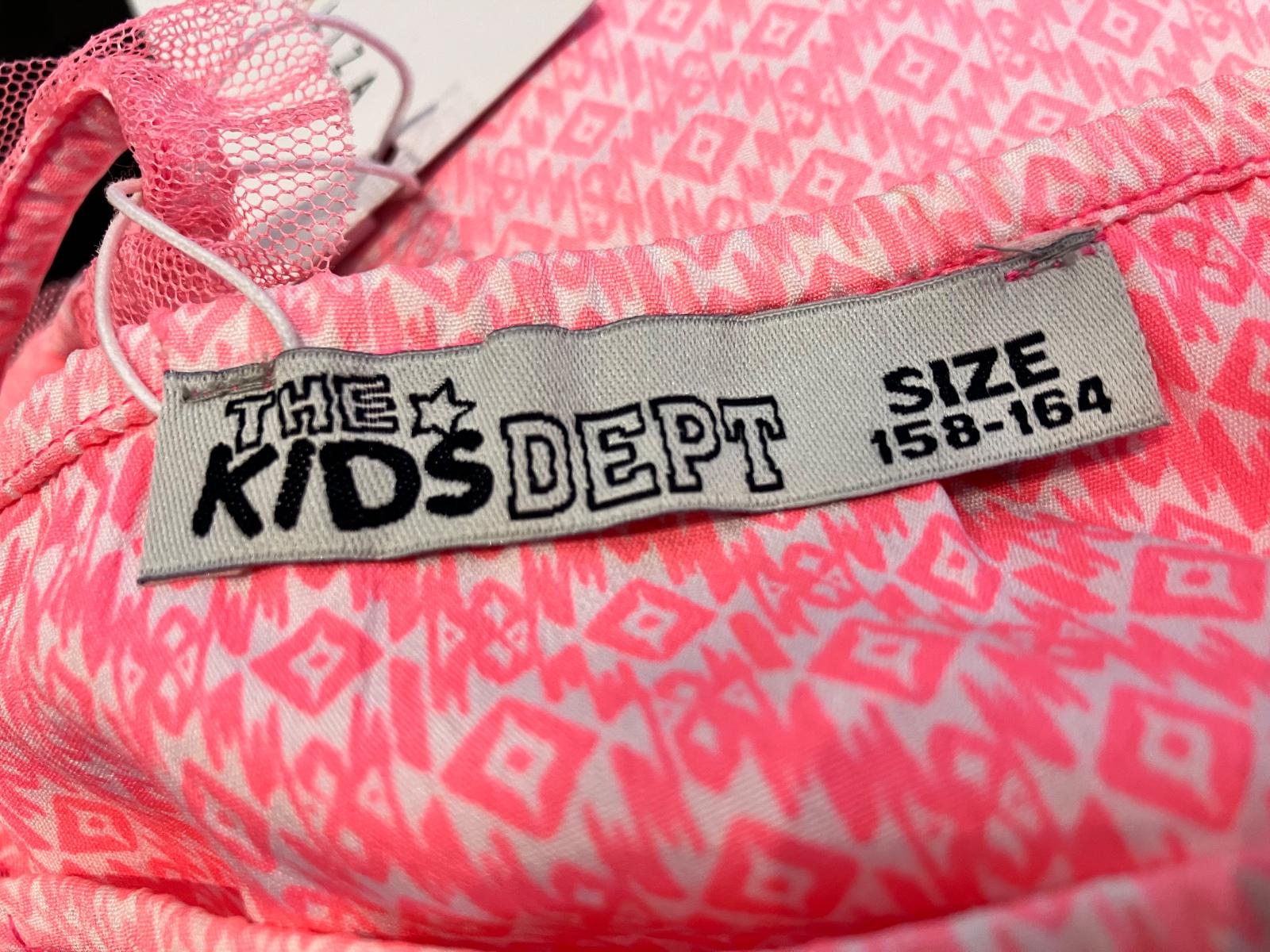 Dievčenská ľahká blúzka s tylovým rukávom, voľný strih, špagetové ramienka s tylom, výstrih na gumičku, tenká, vzorovaná, nie je elastická, dvojité číslovanie, farba neónovo ružová, biela, materiál 100%polyester.
