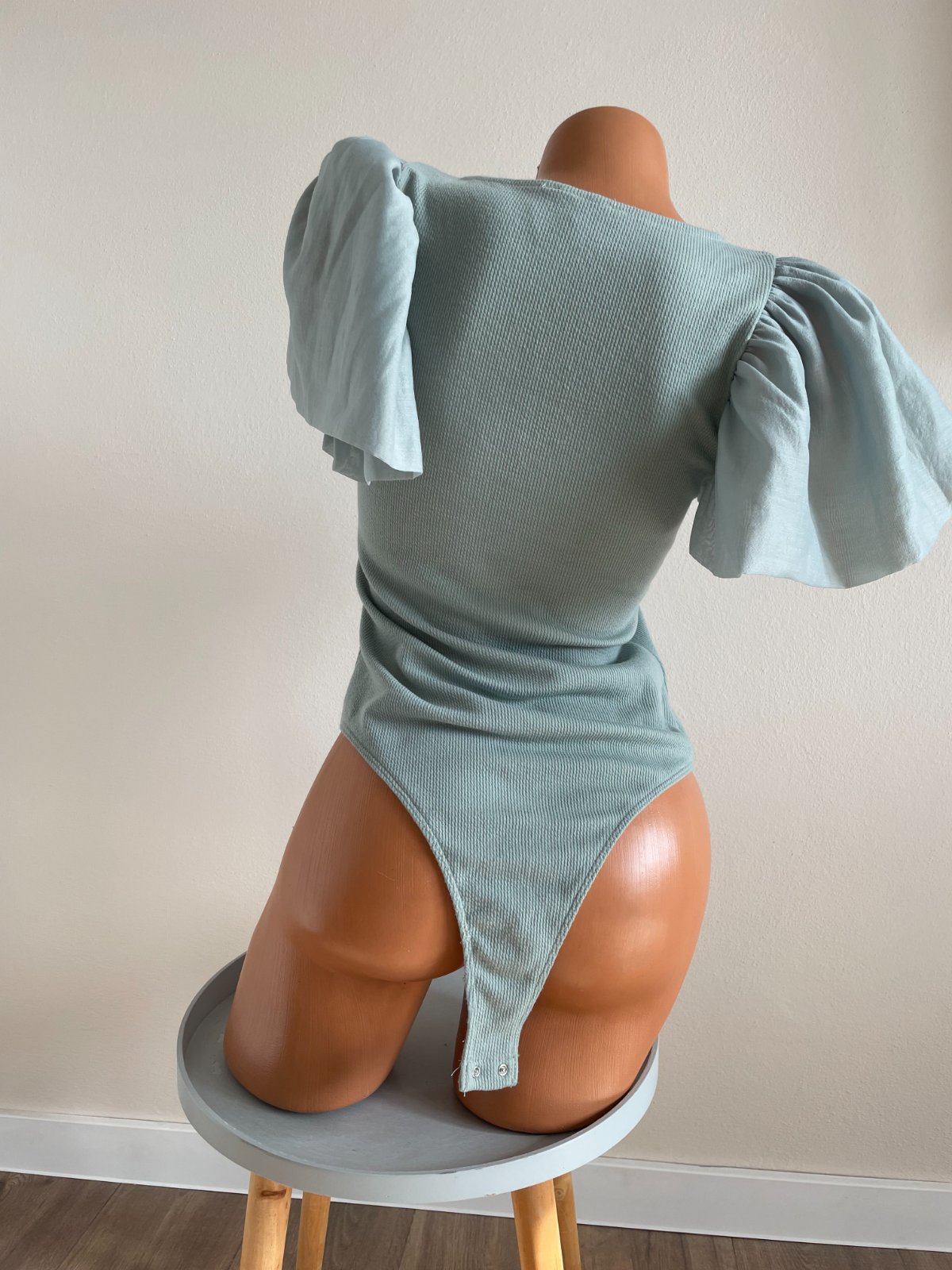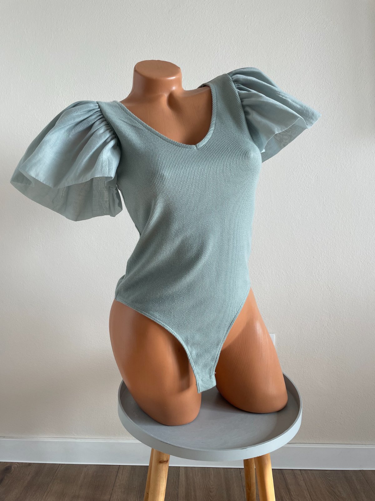 Šalviovo zelený elegantný body top s volánovými rukávmi od Reserved, veľkosť M, top stav.