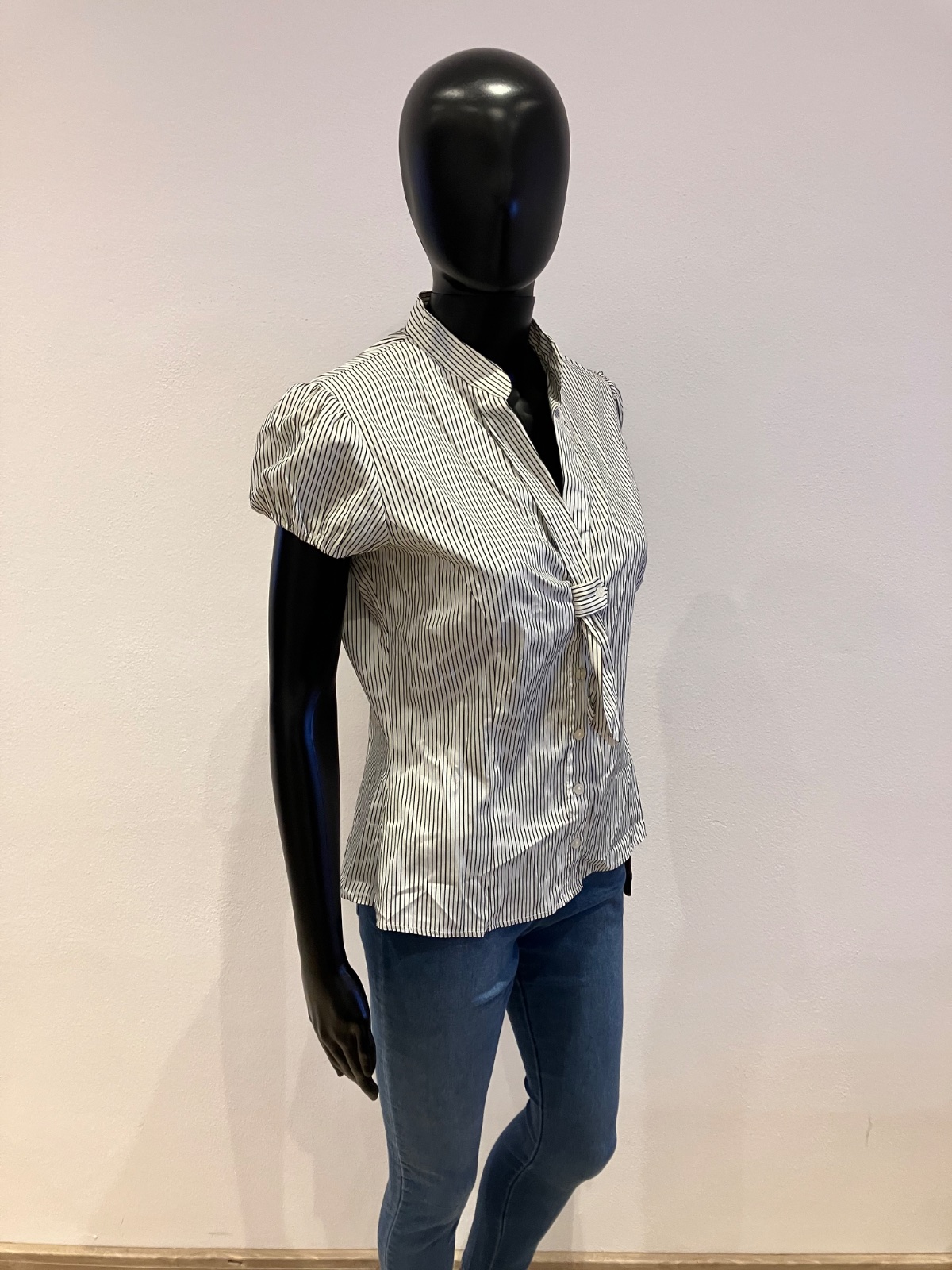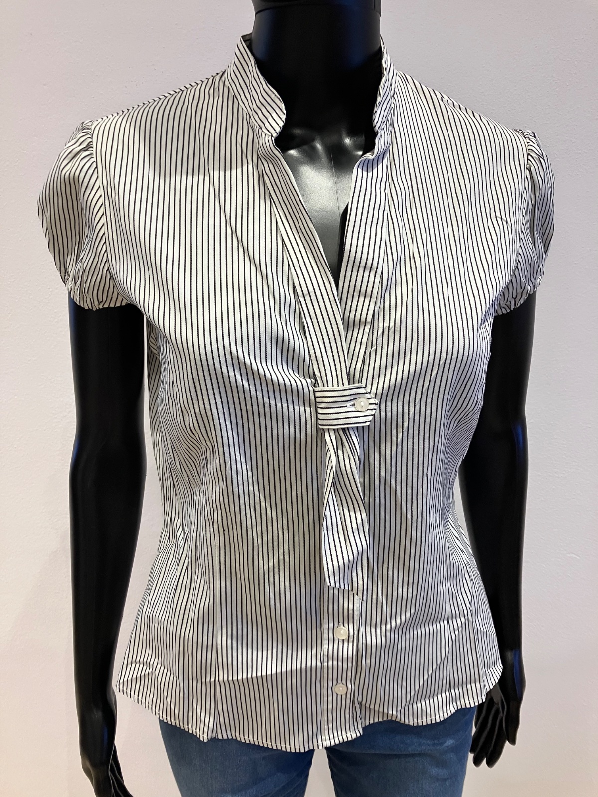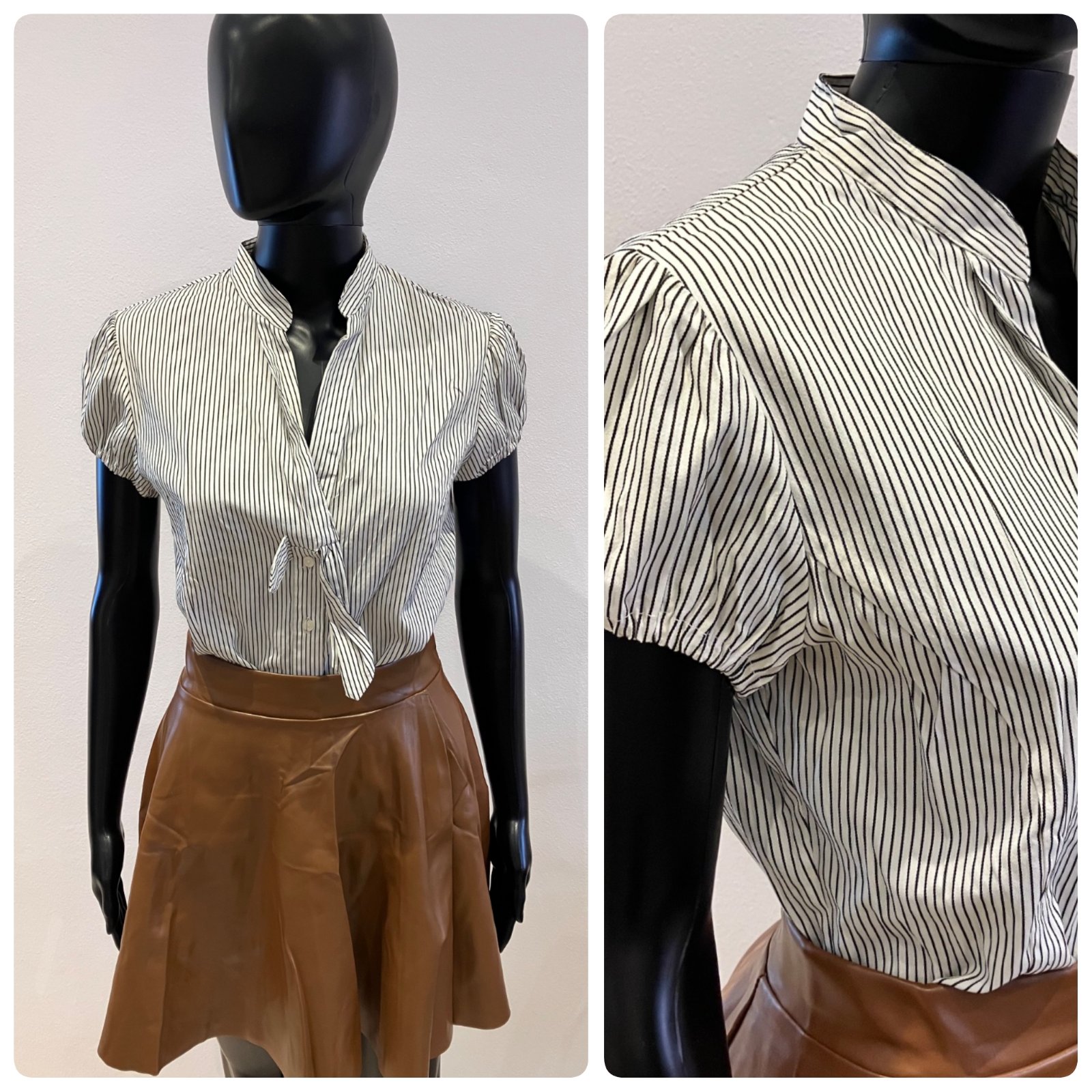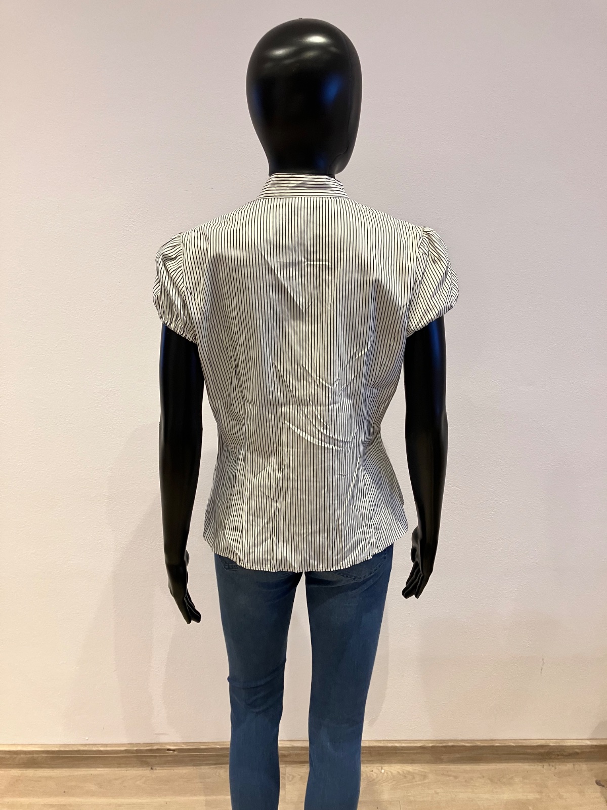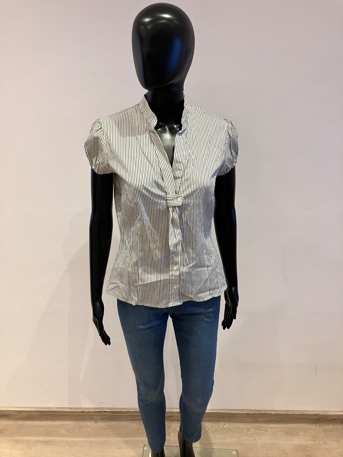 Dámska pásikavá košeľa s krátkym rukávom, zapínanie na gombíky, elastická, veľkosť cca S.