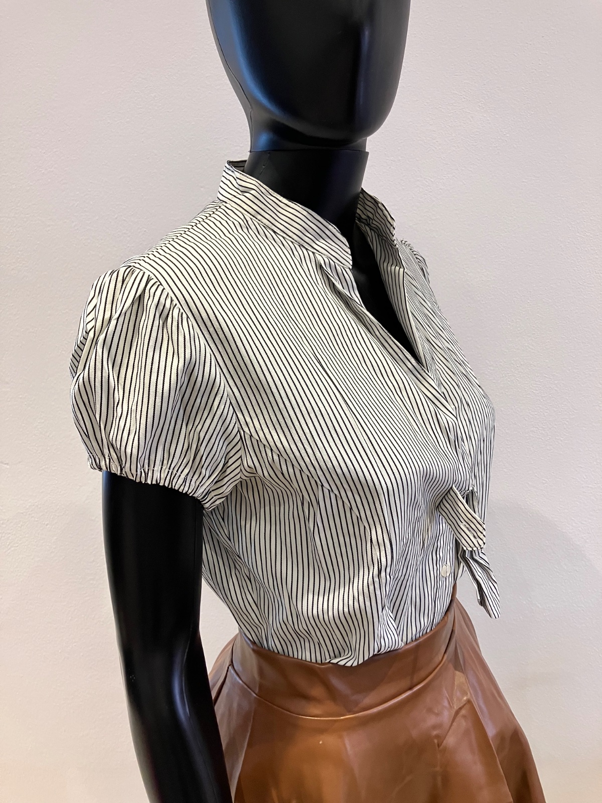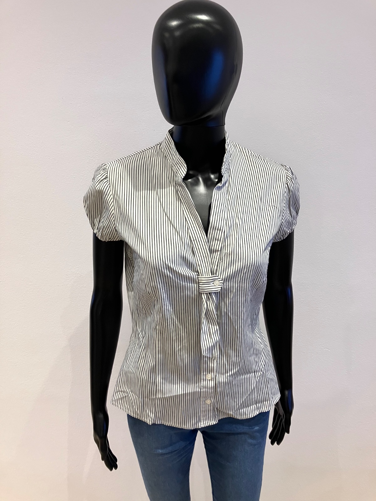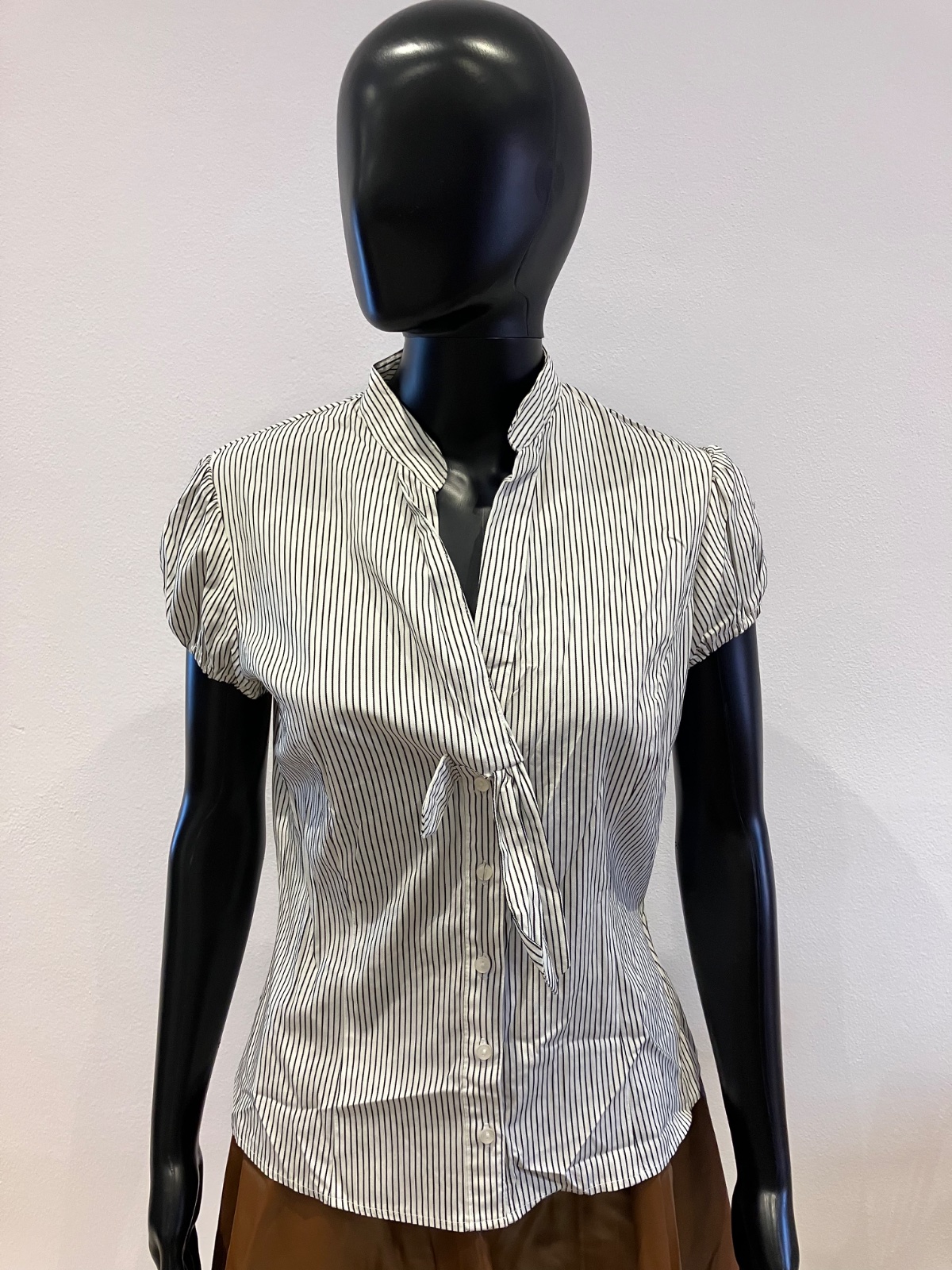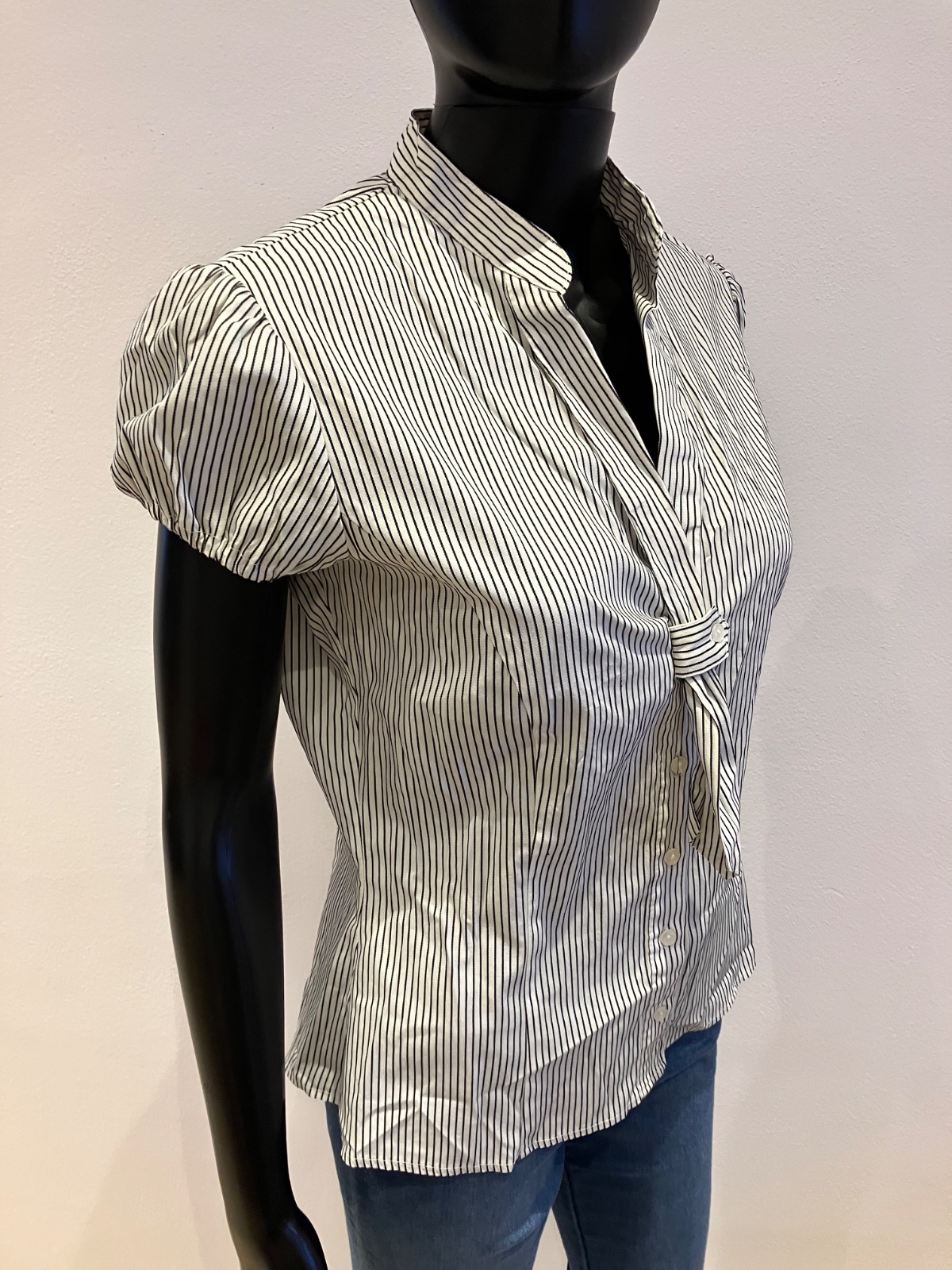Dámska pásikavá košeľa s krátkym rukávom, zapínanie na gombíky, elastická, veľkosť cca S.
