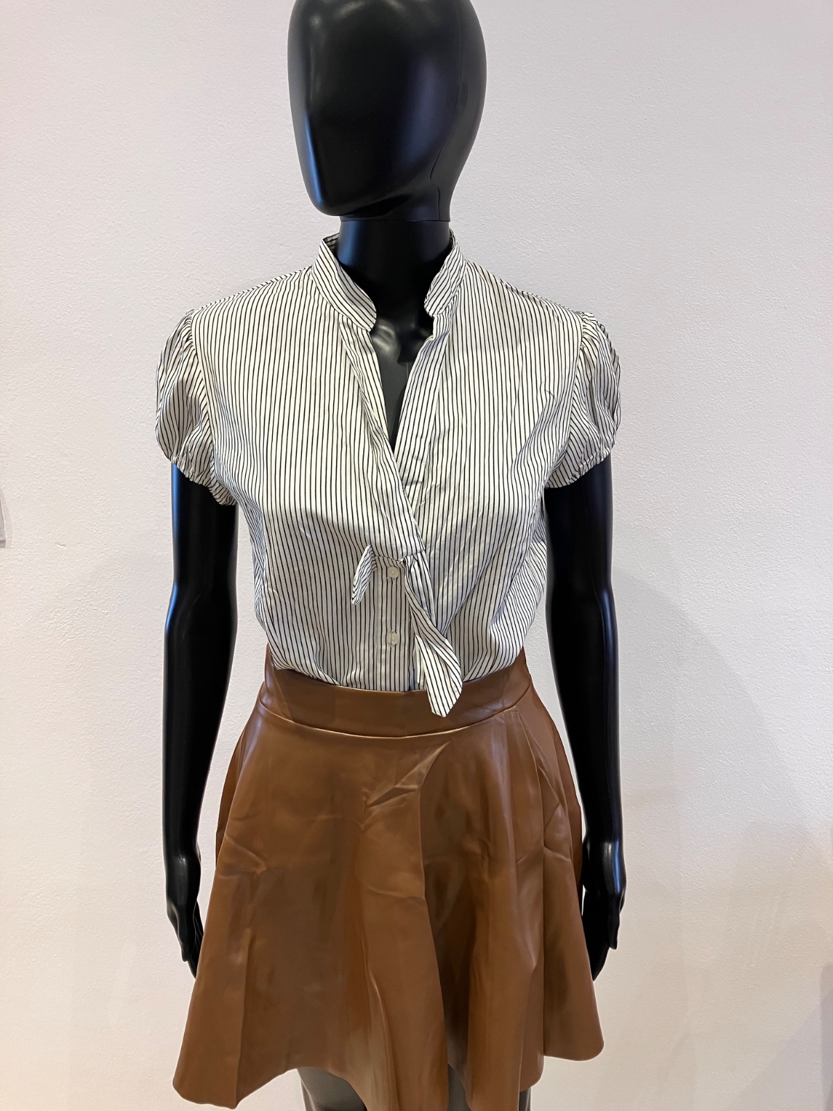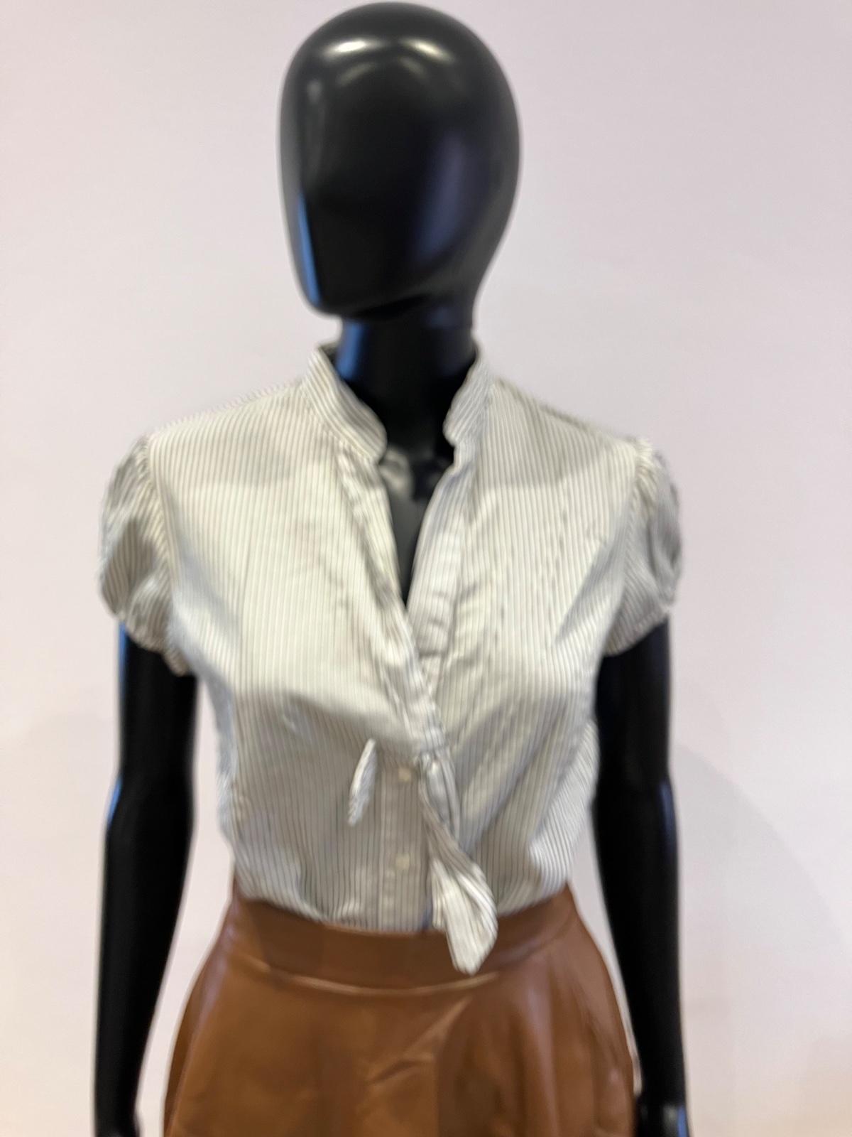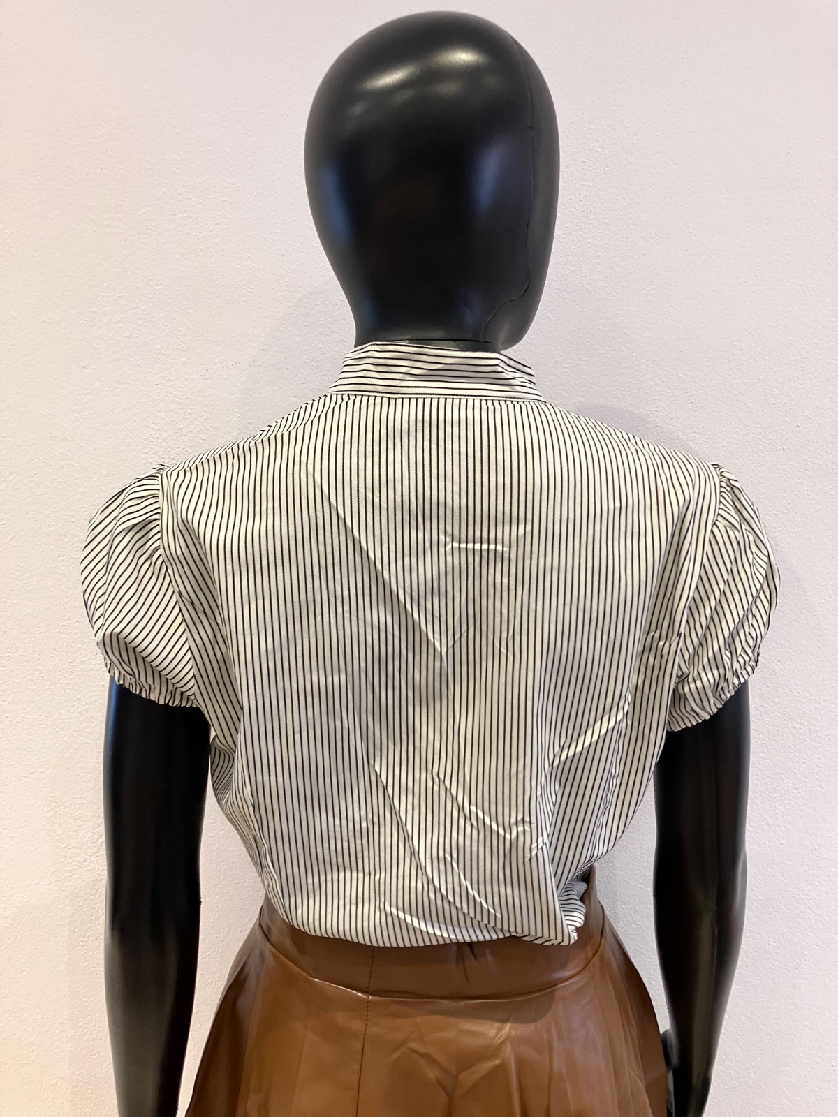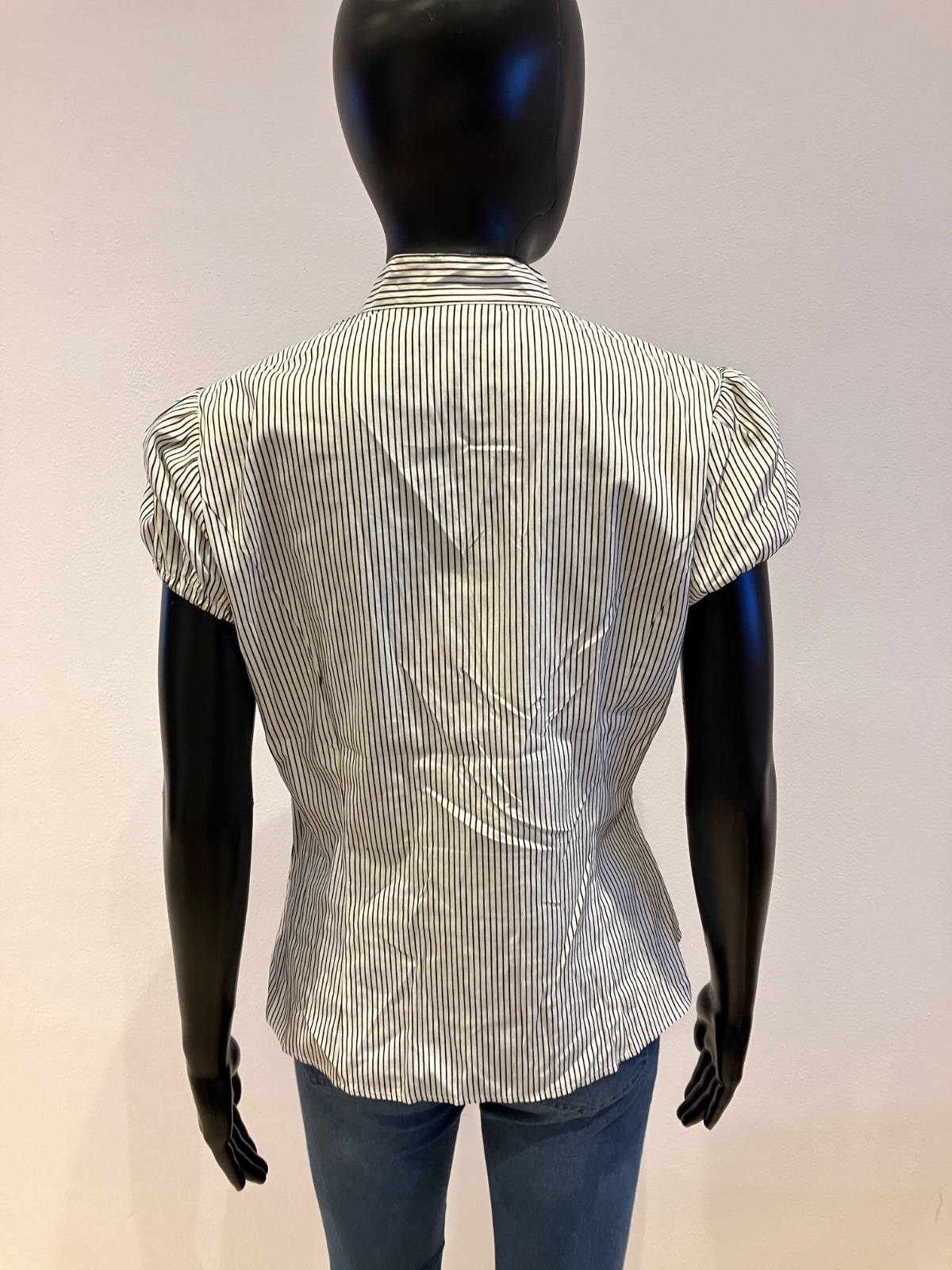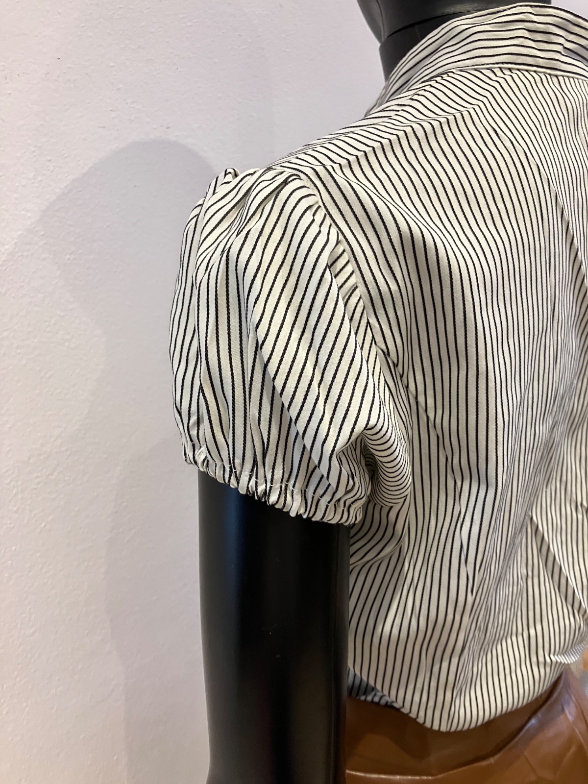 Dámska pásikavá košeľa s krátkym rukávom, zapínanie na gombíky, elastická, veľkosť cca S.
