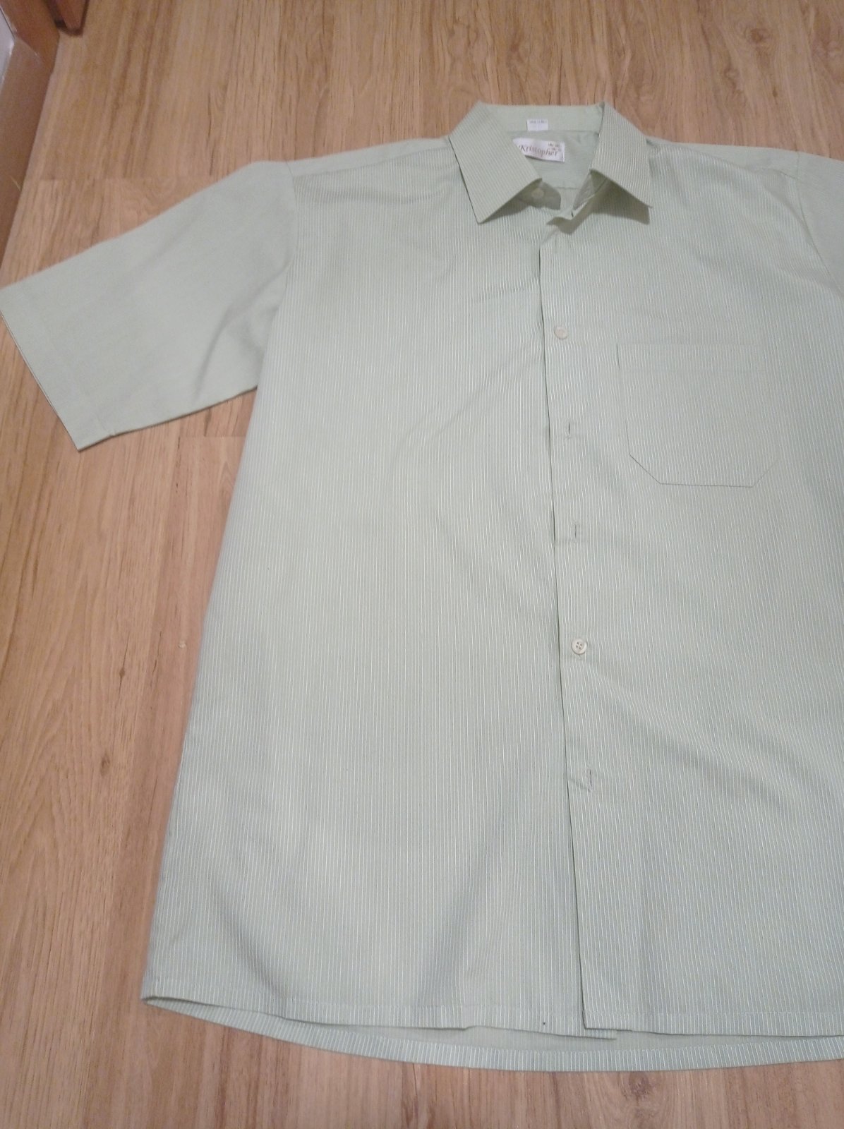 Kosela, ako nova, par x oblecena. Znacka Kristopher. Velkost 40. 176/182. Dlzka:75,cez plecia 48, sirka pod pazuchami:57 cm. Material neuvedeny,ale kvalitna. Nekrci sa. Farba bleda zelena s bielymi pasikmi.